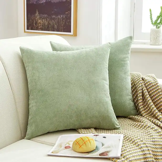 MERNETTE Pack of 2, Thick Chenille Decorative Square Throw Pillow Cover Cushion Covers Pillowcase, Home Decor Decorations for Sofa Couch Bed Chair 16x16 Inch/40x40 cm (Bean Green) — Price History & Tracker | DeserTracker