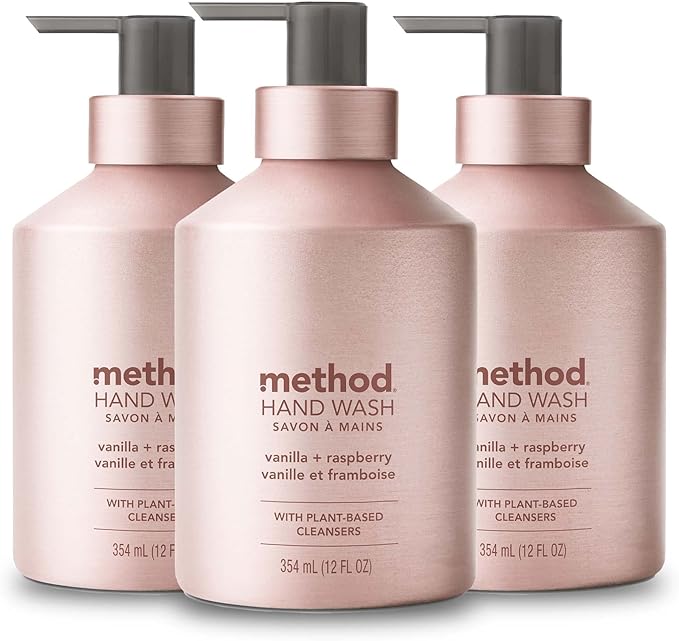 Method Gel Hand Soap, Vanilla + Raspberry, Reusable Pink Aluminum Bottle, Biodegradable Formula, 12 oz (Pack of 3)