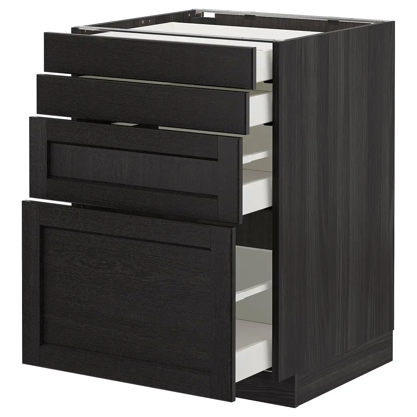 IKEA METOD Base cabinet with 4 fronts and 4 drawers 60x60 cm LERHYTTAN black stained