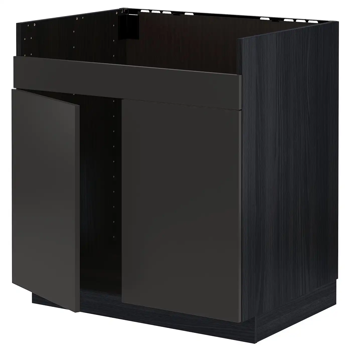 METOD / MAXIMERA Base cab f sink+2 fronts/2 drawers - black/Nickebo matt anthracite 80x60 cm