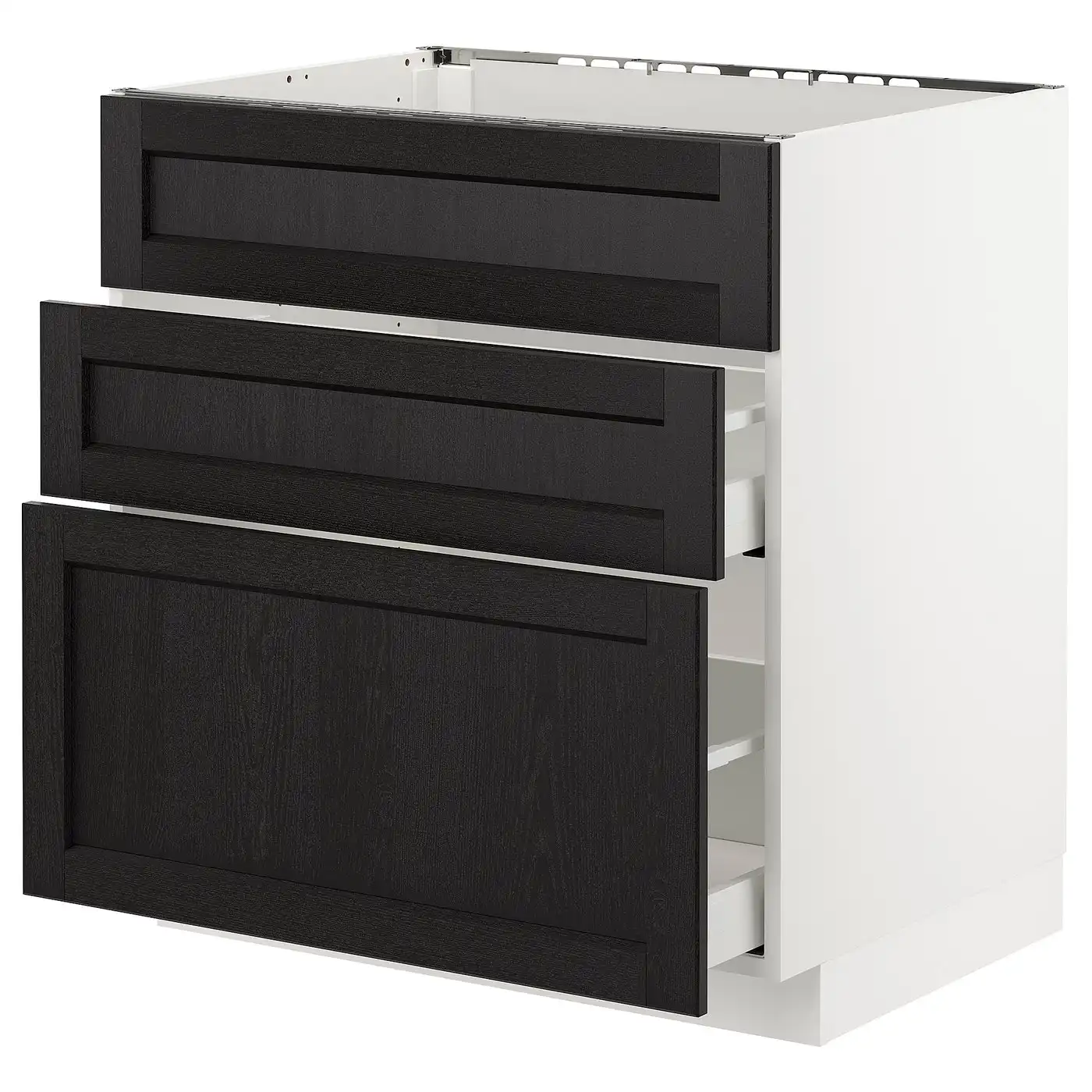 METOD Base cab f sink+3 fronts/2 drawers - white/Lerhyttan black stained 80x60 cm