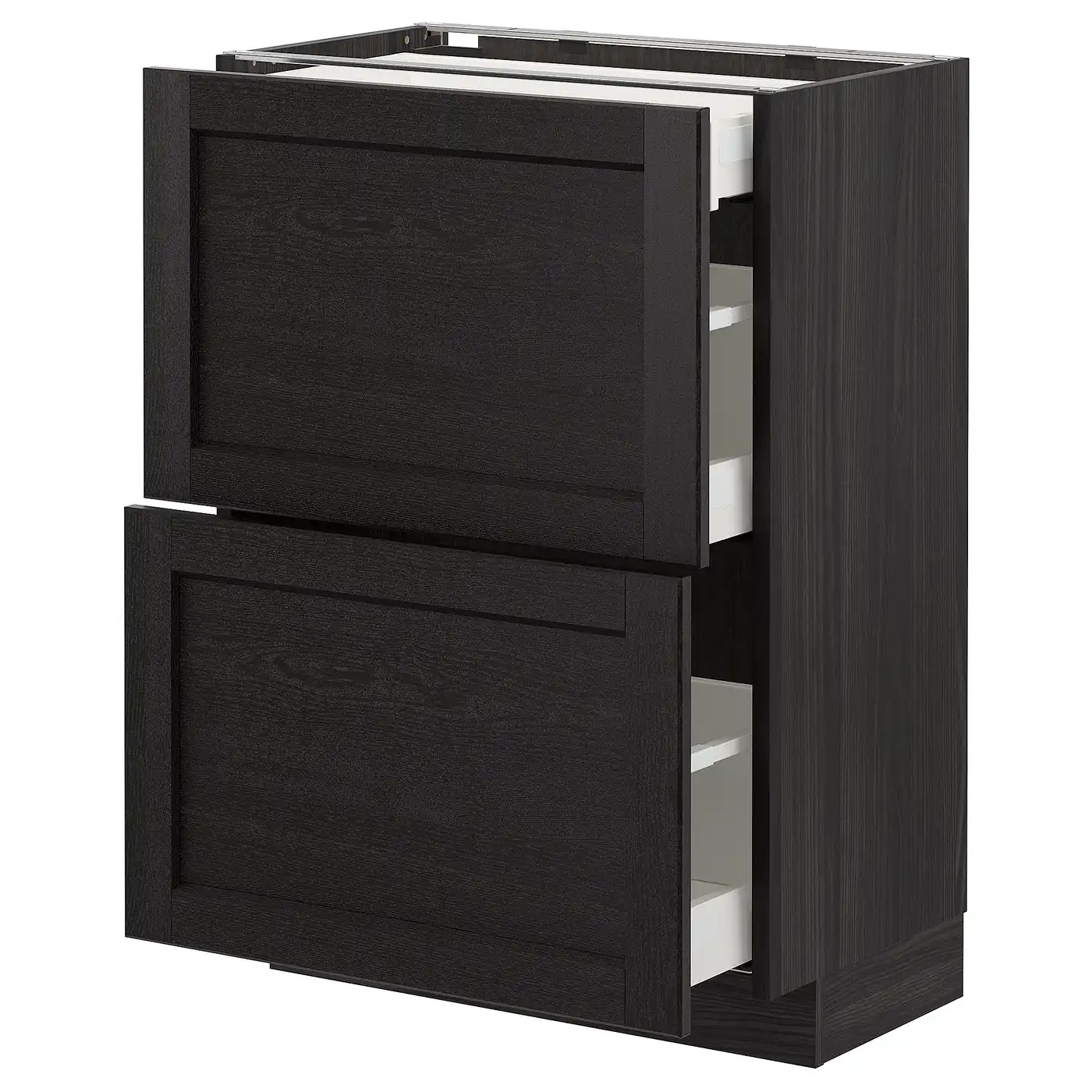 METOD Base cab with 2 fronts/3 drawers - black/Lerhyttan black stained 60x37 cm — Price History & Tracker | DeserTracker