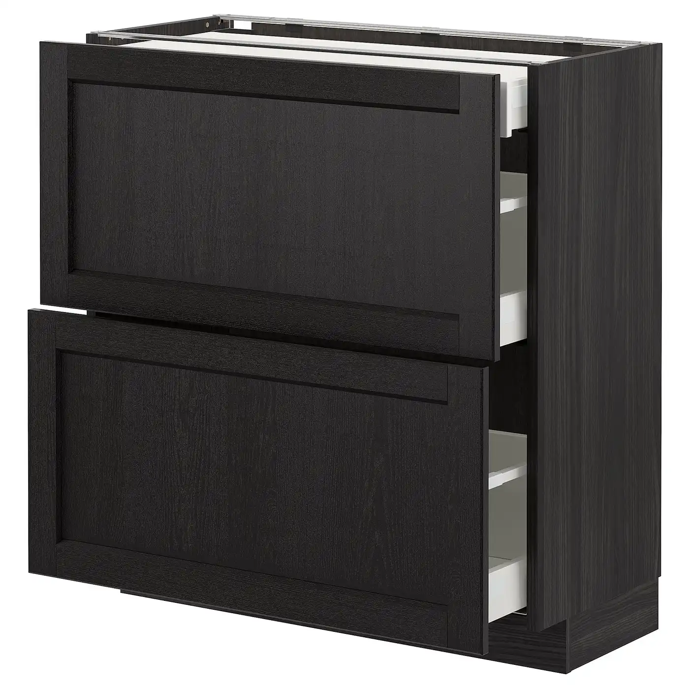 METOD Base cab with 2 fronts/3 drawers - black/Lerhyttan black stained 80x37 cm