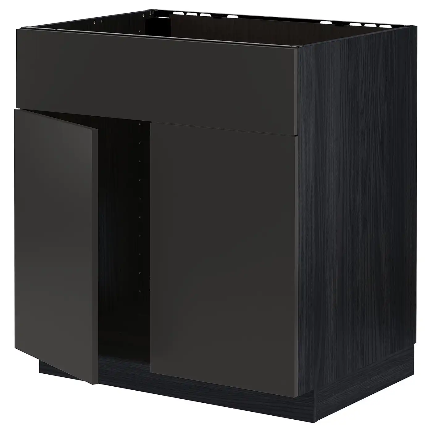 METOD Base cabinet f sink w 2 doors/front - black/Nickebo matt anthracite 80x60 cm