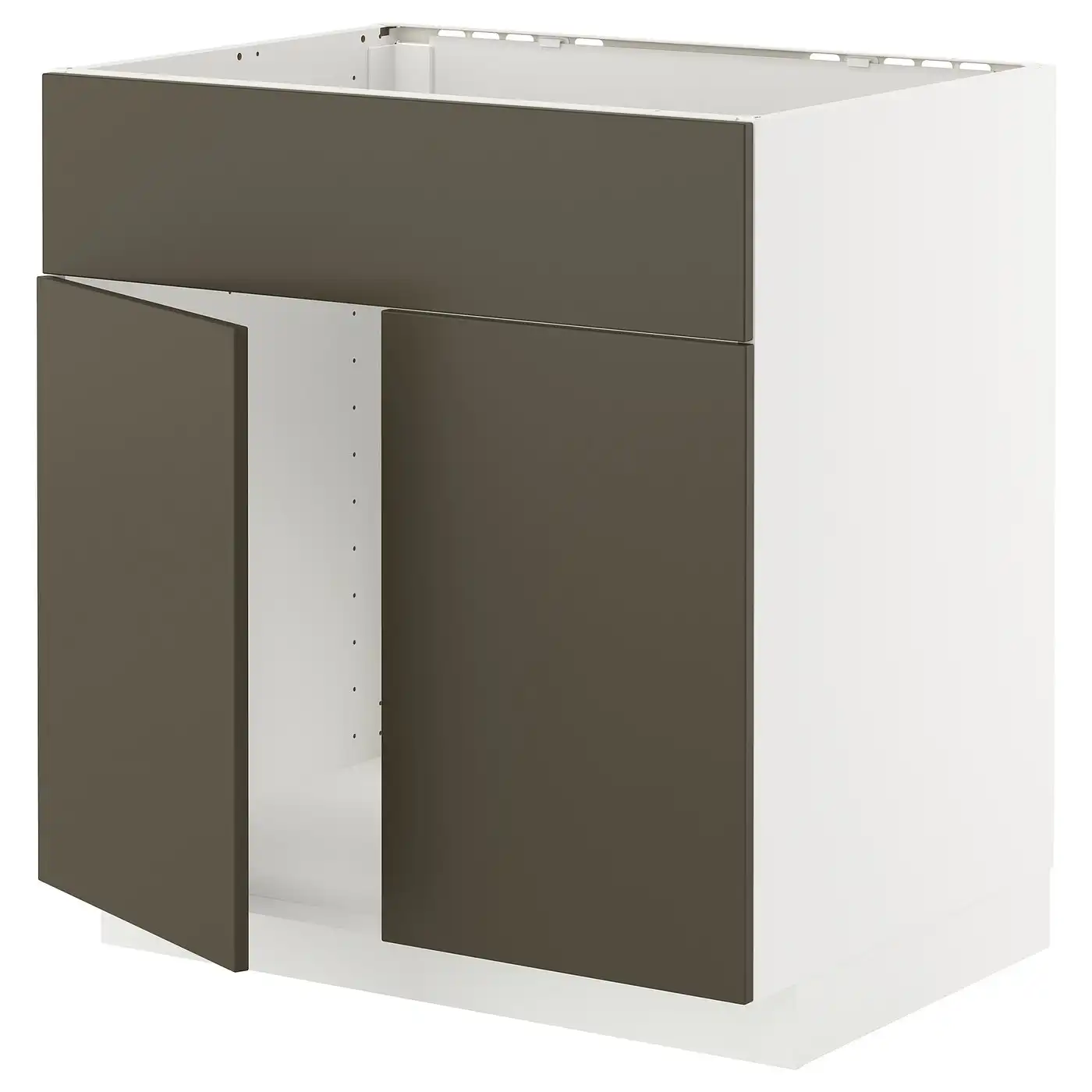 METOD Base cabinet f sink w 2 doors/front - white/Havstorp brown-beige 80x60 cm