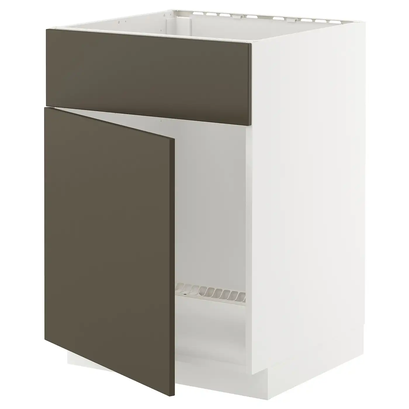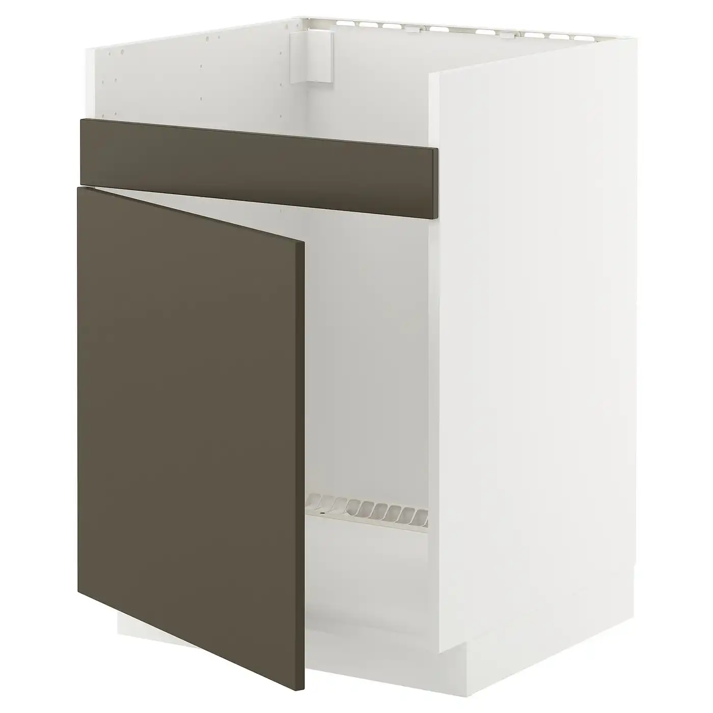 METOD Base cabinet f sink w door/front - white/Havstorp brown-beige 60x60 cm
