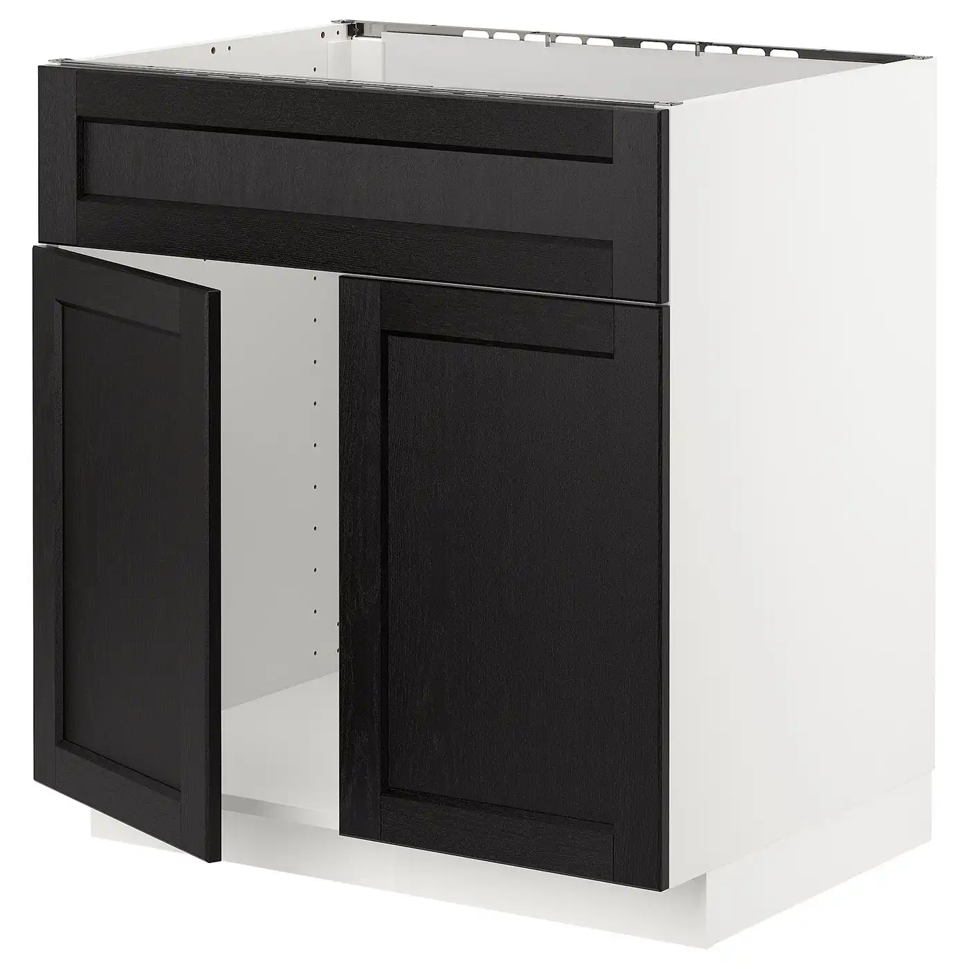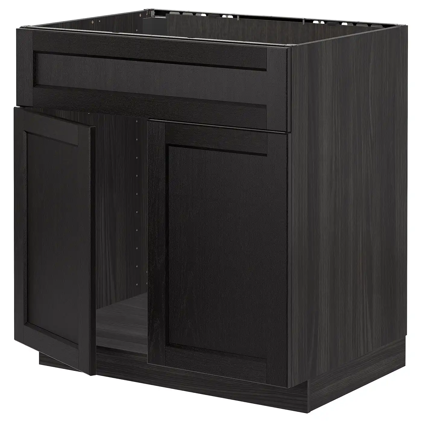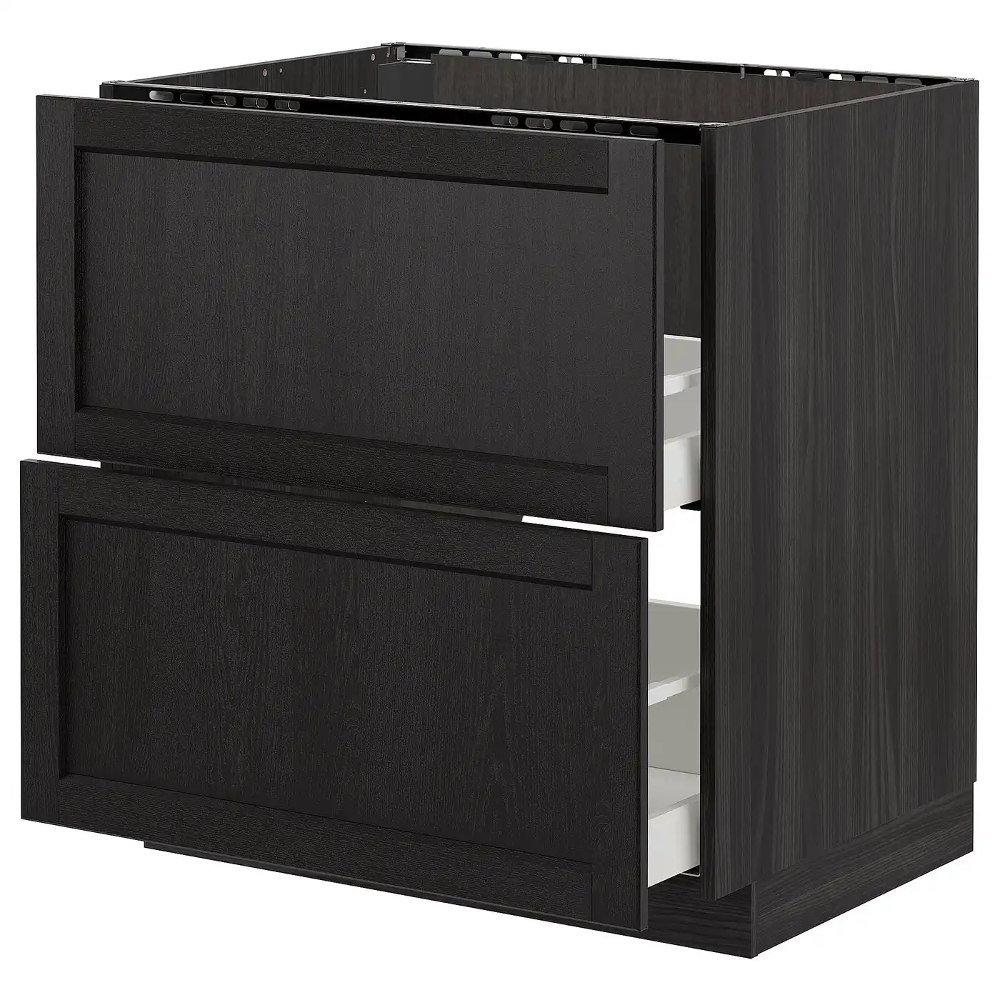 METOD Base cab f sink+2 fronts/2 drawers - black/Lerhyttan black stained 80x60 cm