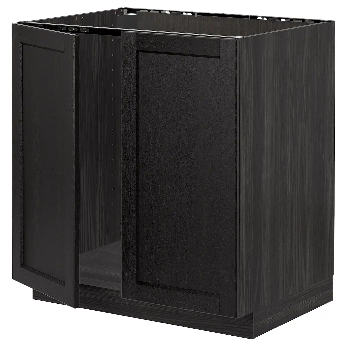 METOD Base cabinet f sink w 2 doors/front - black/Lerhyttan black stained 80x60 cm