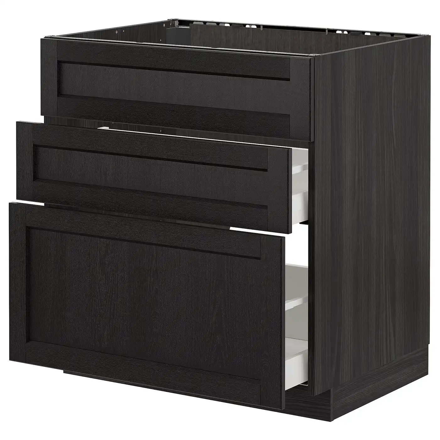 METOD Base cab f sink+3 fronts/2 drawers - black/Lerhyttan black stained 80x60 cm