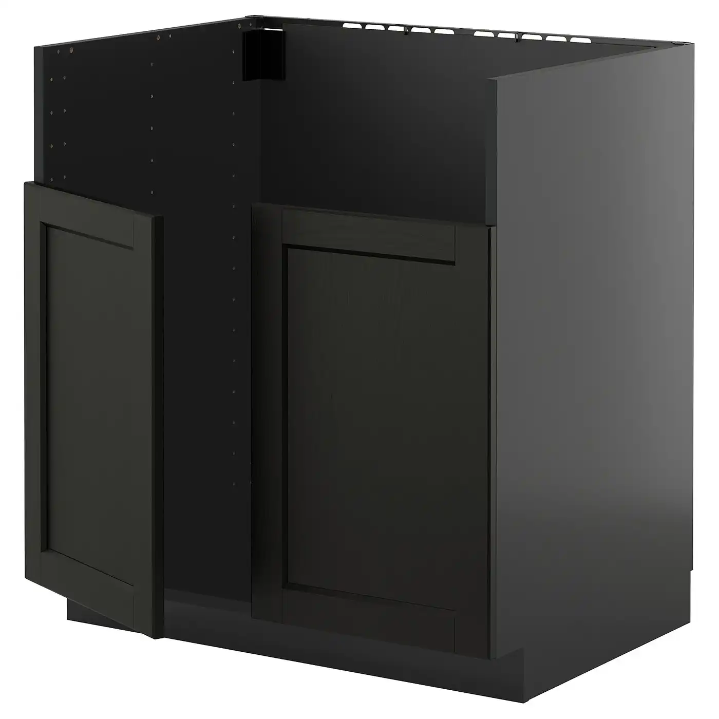 METOD Base cabinet for sink + 2 doors - black/Lerhyttan black stained 80x60 cm