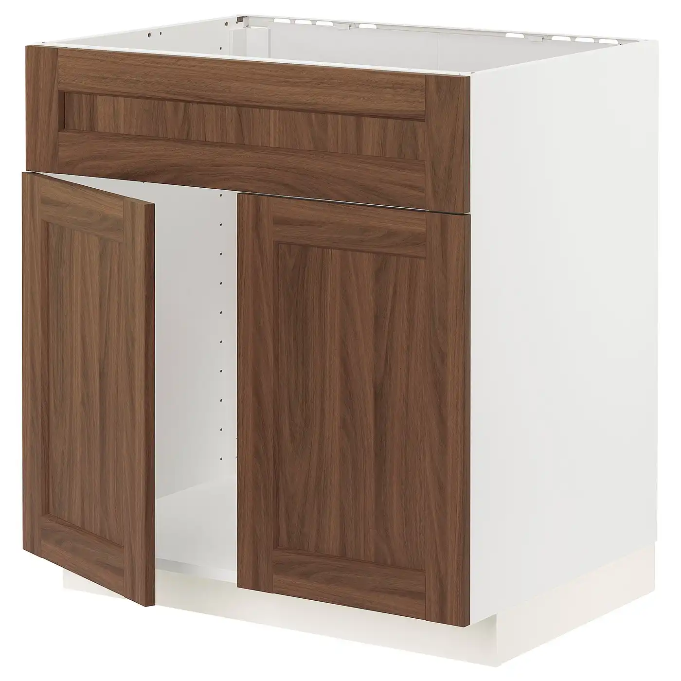 METOD Base cabinet for sink + 2 doors - white Enköping/brown walnut effect 80x60 cm