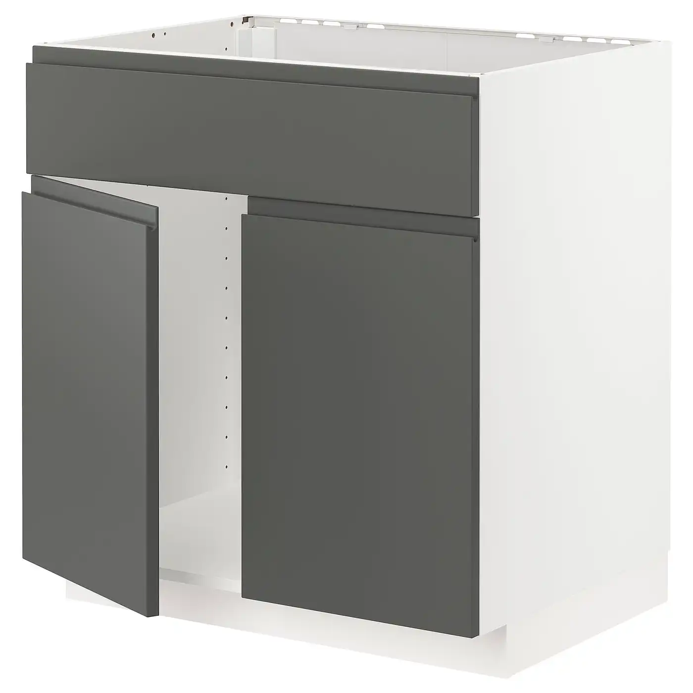 METOD Base cabinet f sink w 2 doors/front - white/Voxtorp dark grey 80x60 cm