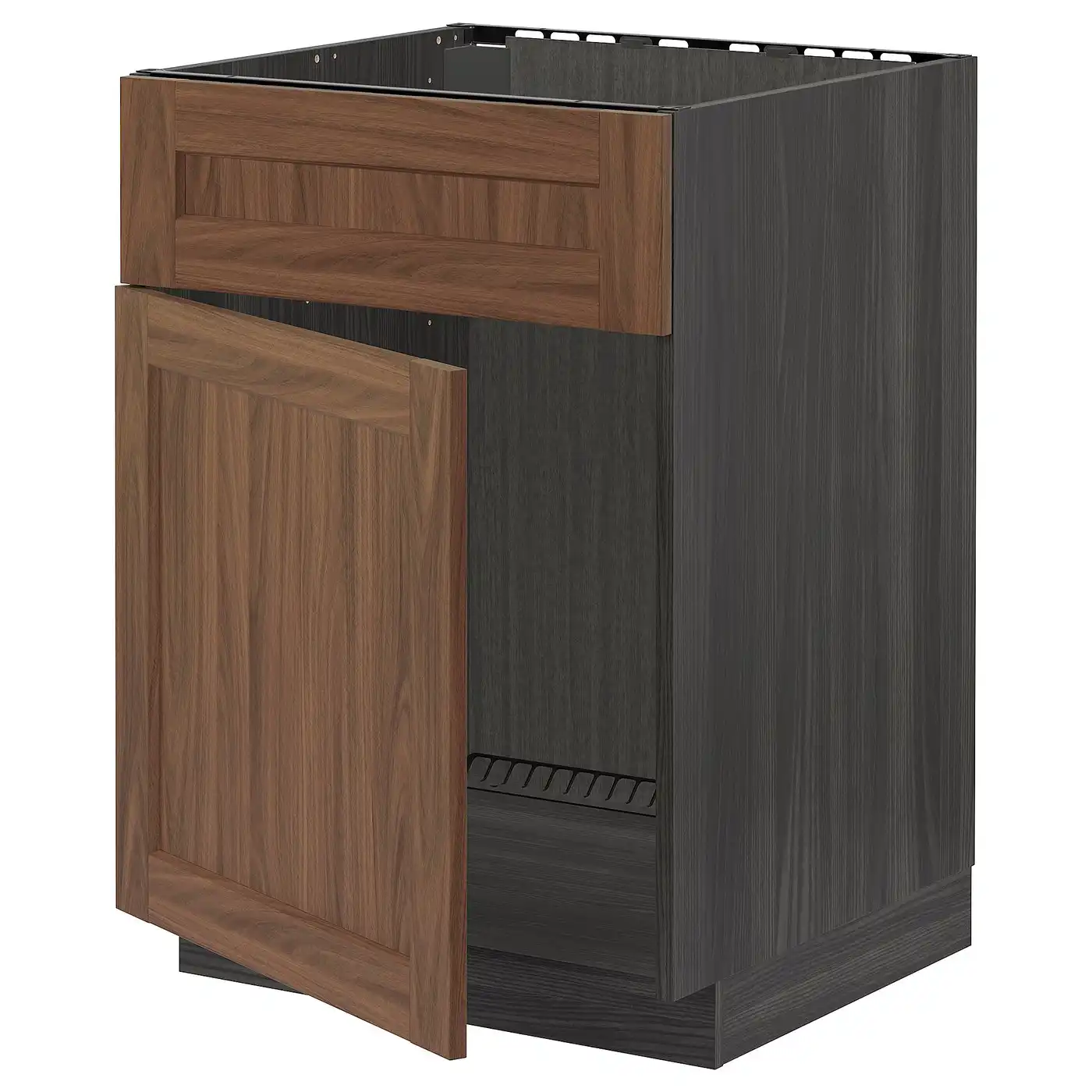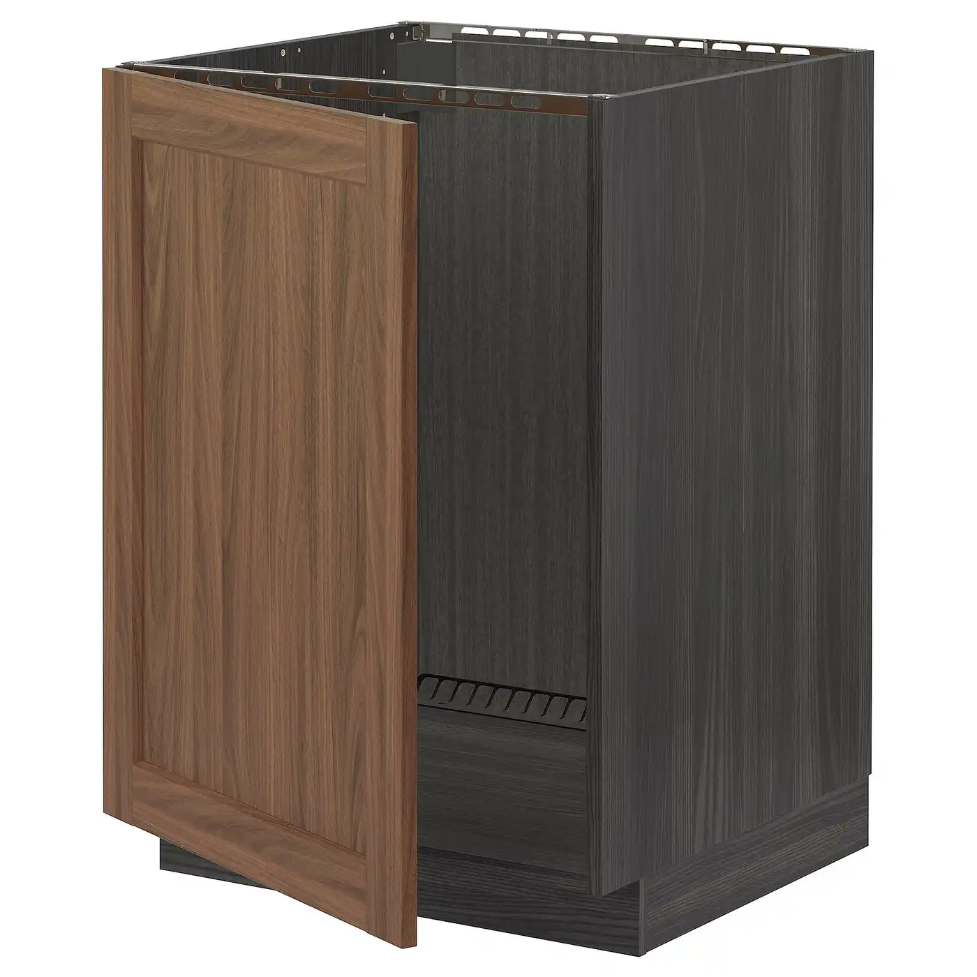 METOD Base cabinet for sink - black Enköping/brown walnut effect 60x60 cm