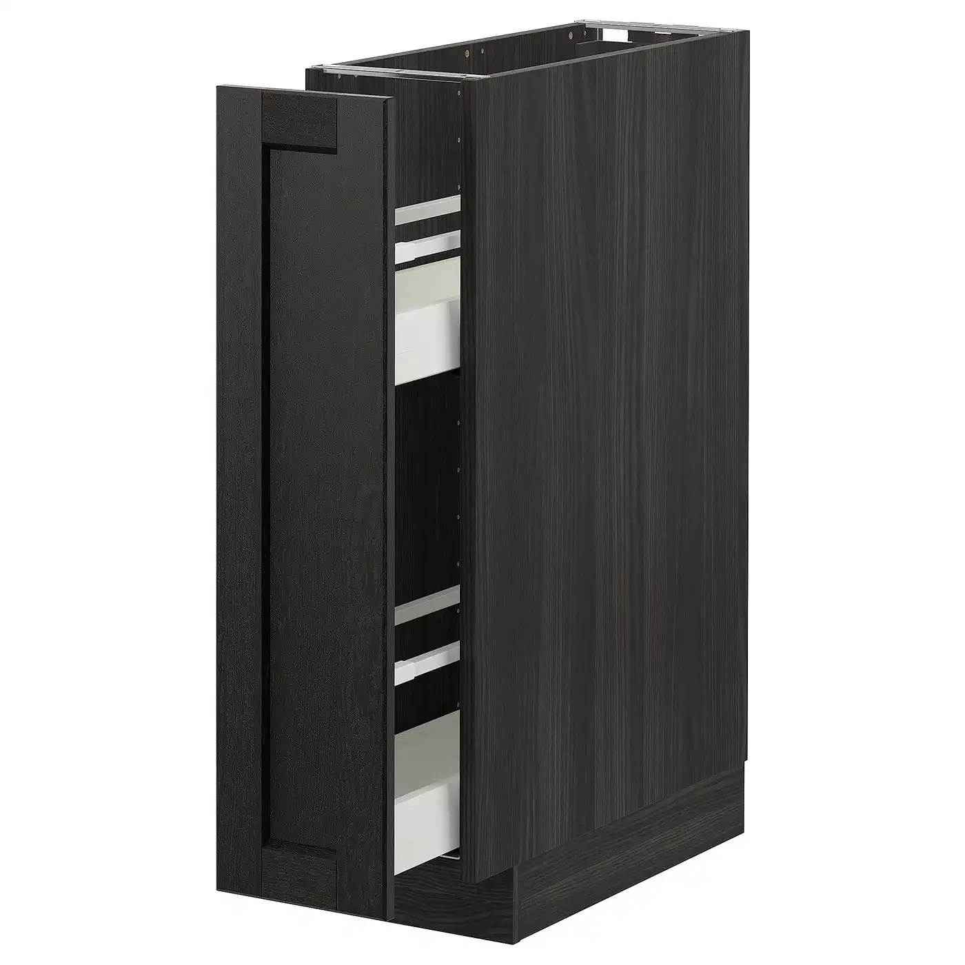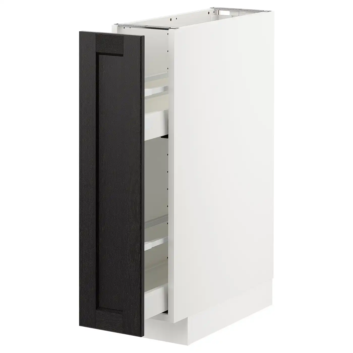 METOD Base cabinet/pull-out int fittings - white/Lerhyttan black stained 20x60 cm
