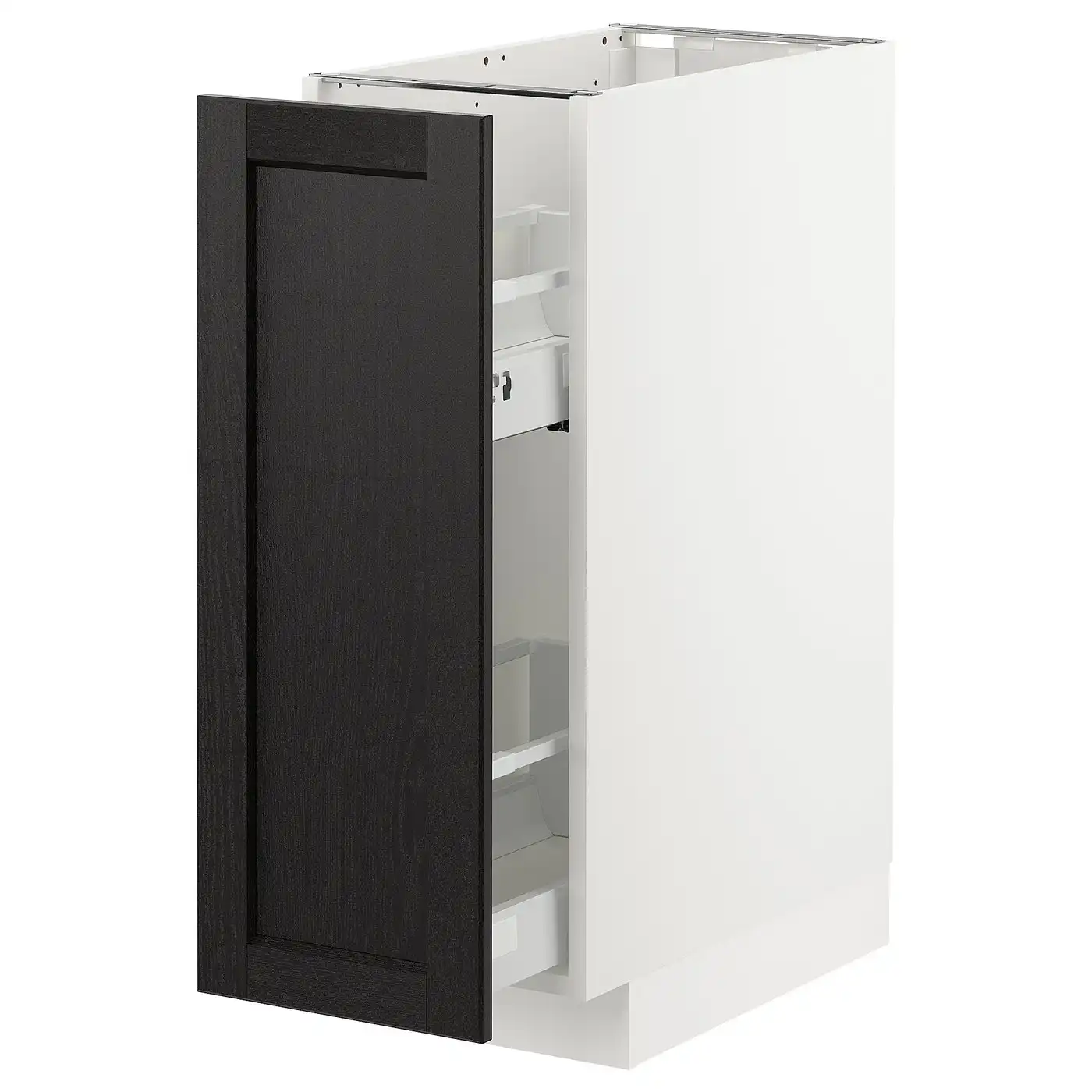 METOD Base cabinet/pull-out int fittings - white/Lerhyttan black stained 30x60 cm