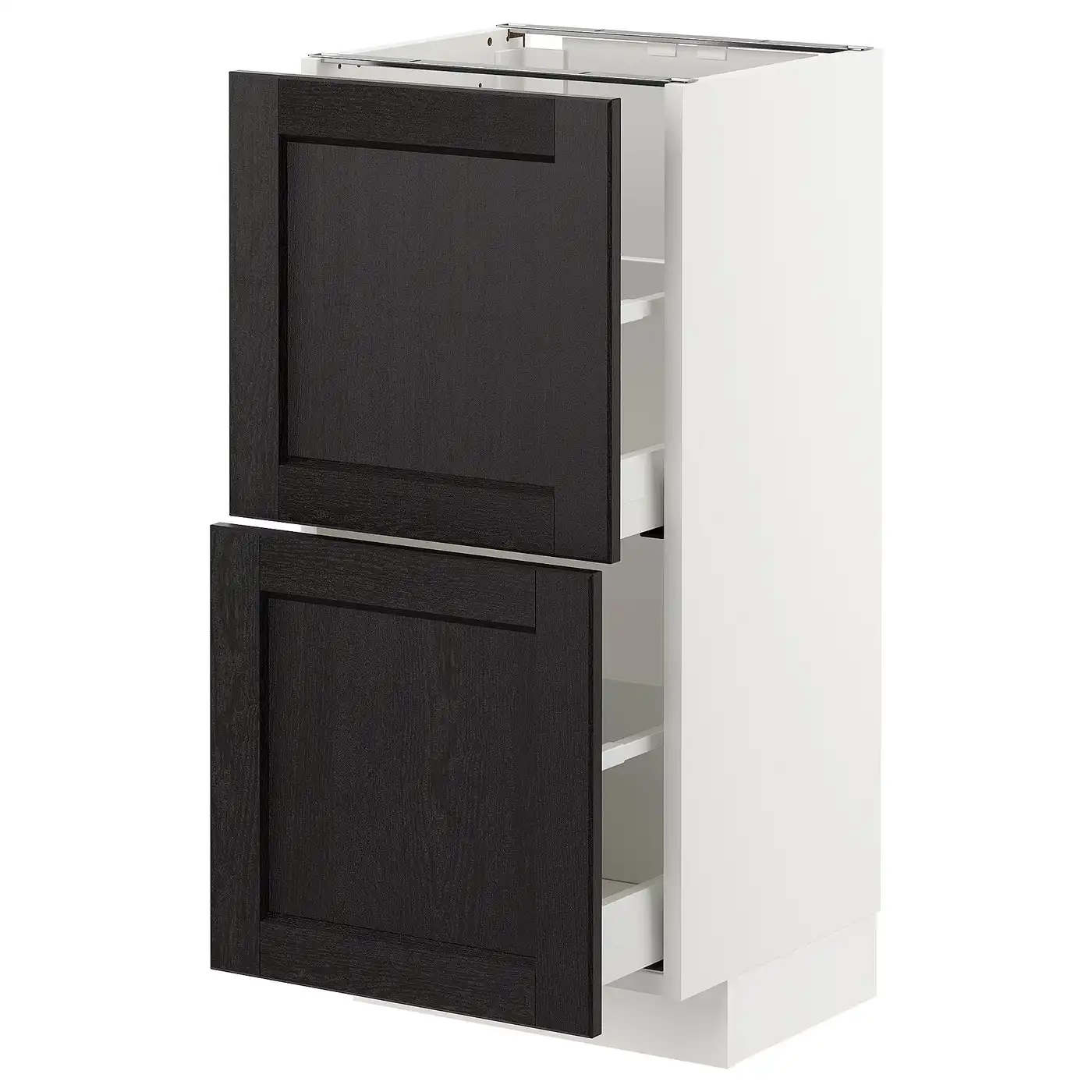Compare all IKEA METOD Base cabinet with 2 drawers 40x37 cm LERHYTTAN black stained/white prices