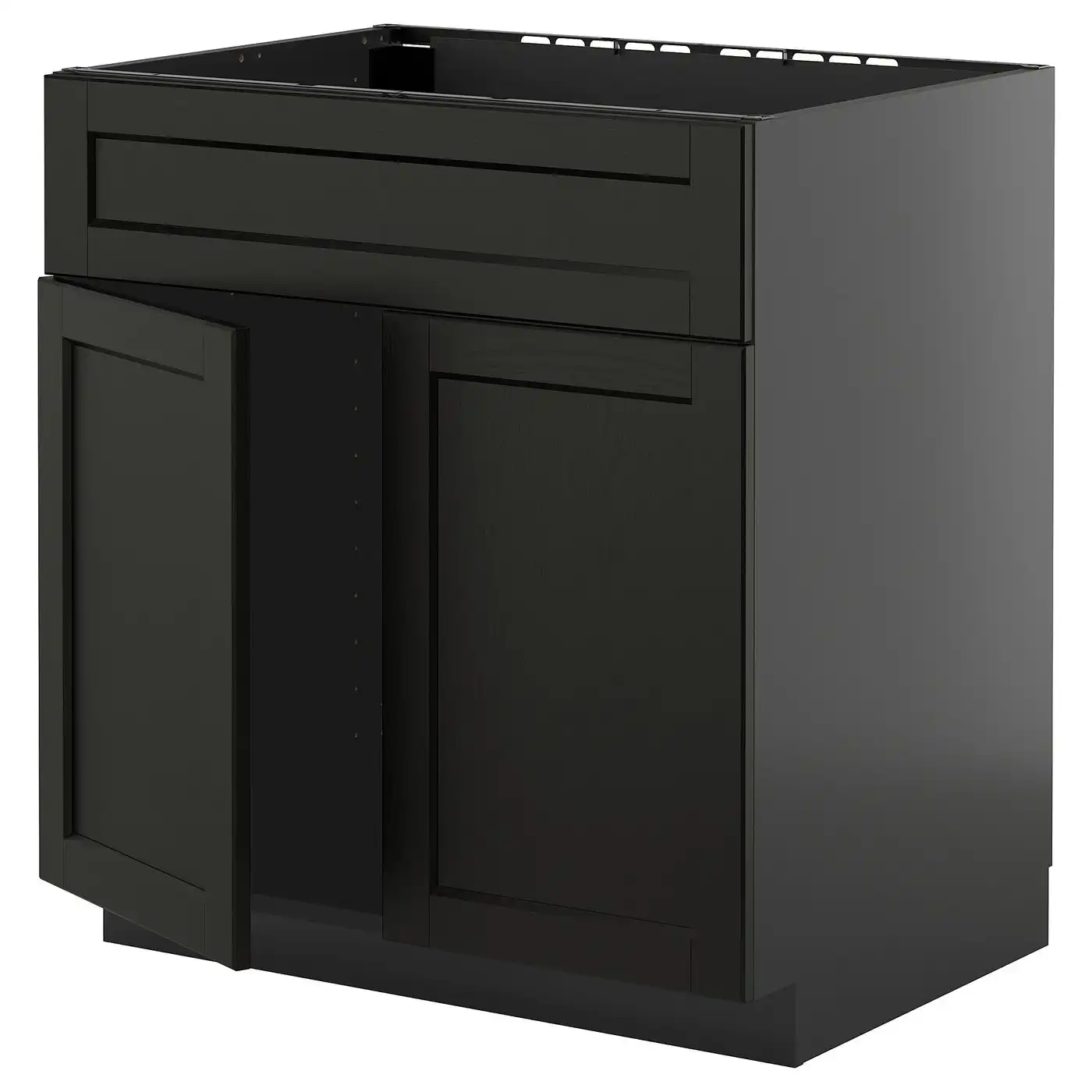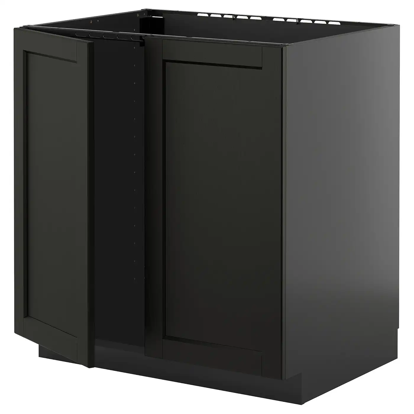 METOD Base cabinet for sink + 2 doors - black-grey/Lerhyttan black stained 80x60 cm