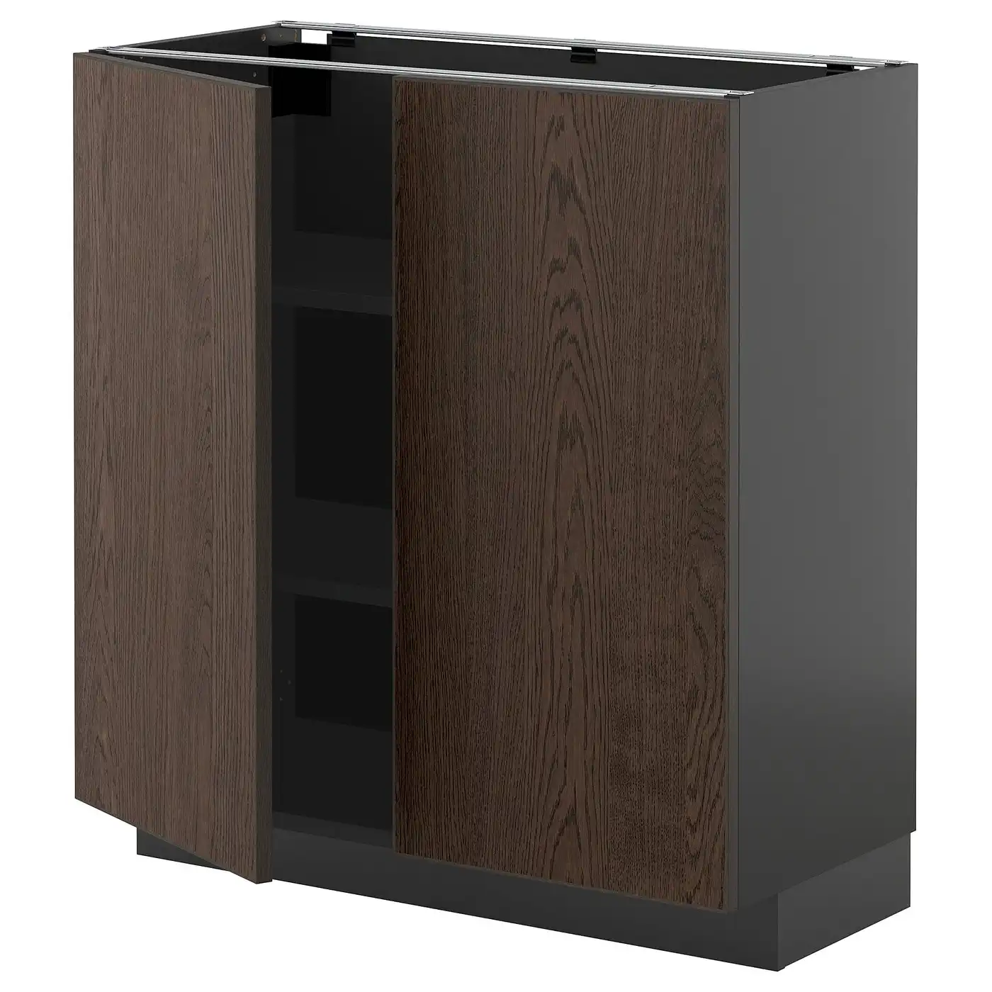 METOD Base cabinet with shelves/2 doors - black/Sinarp brown 80x37 cm