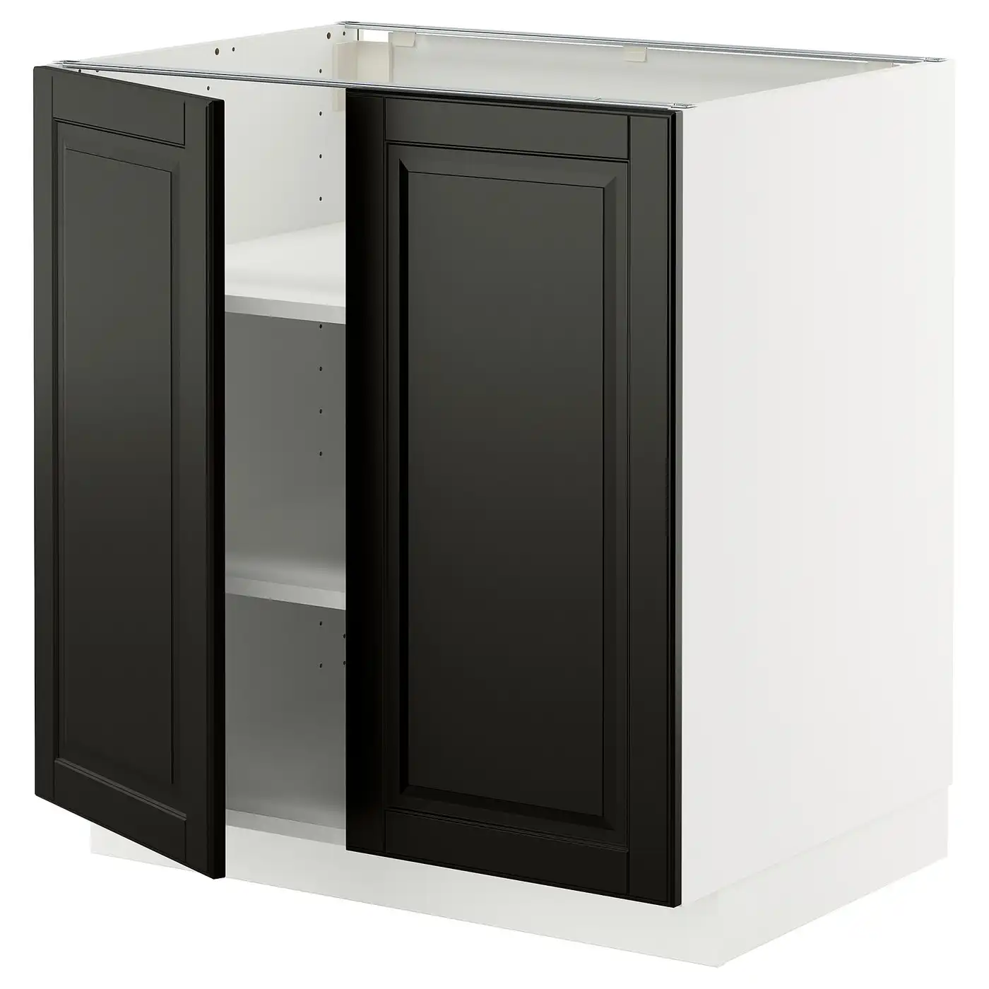 METOD Base cabinet with shelves/2 doors - white/Bodbyn black 80x60 cm