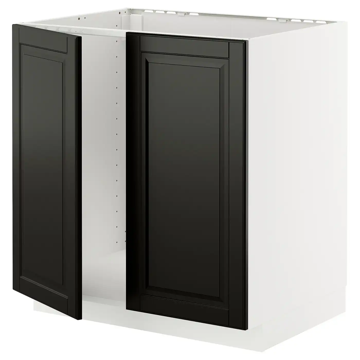 METOD Base cabinet for sink + 2 doors - white/Bodbyn black 80x60 cm