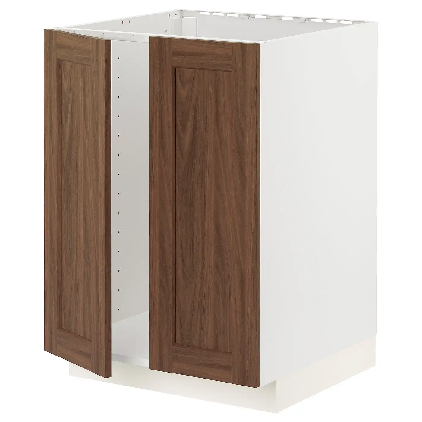 METOD Base cabinet for sink + 2 doors - white Enköping/brown walnut effect 60x60 cm