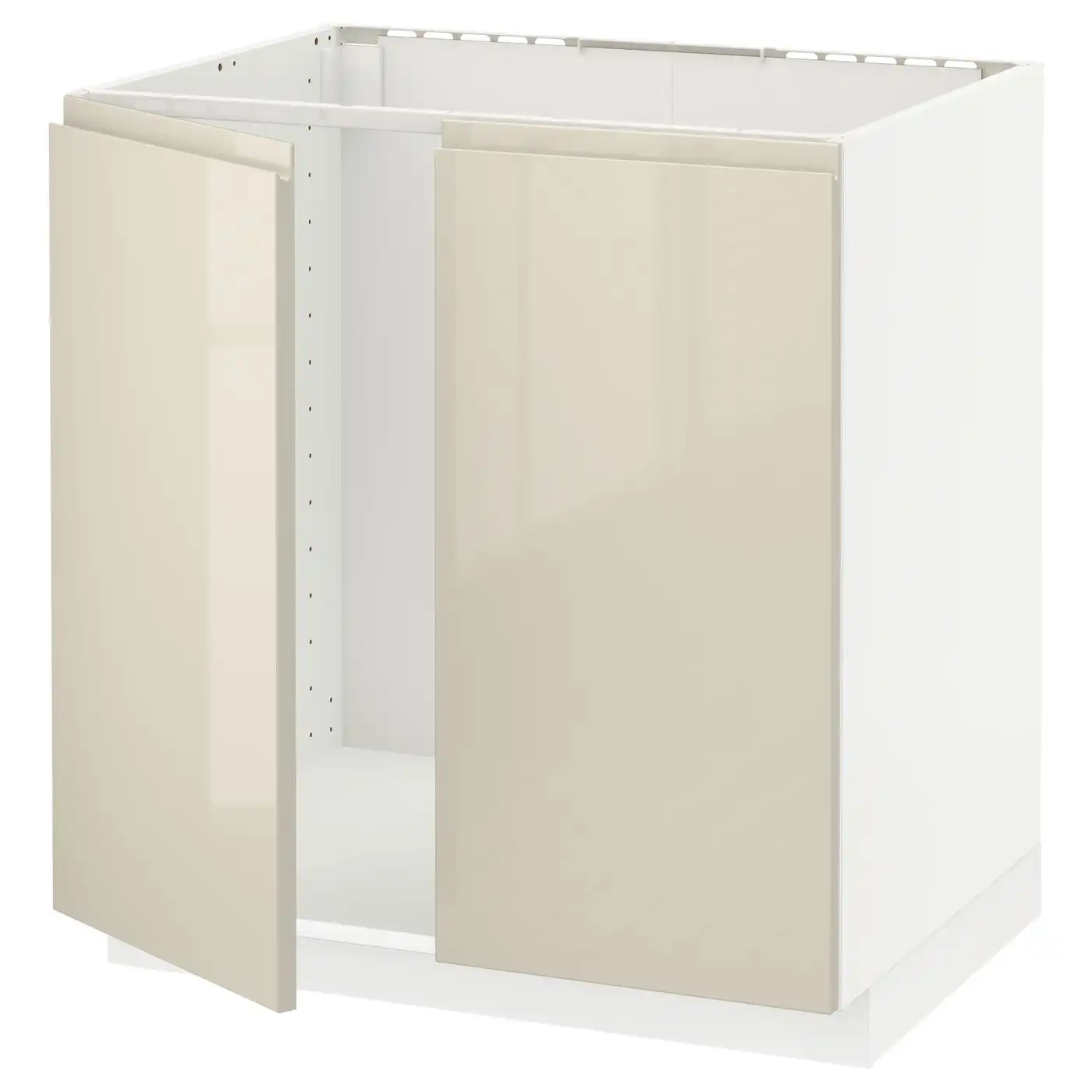 METOD Base cabinet with shelves/2 doors - white/Voxtorp high-gloss light beige 80x60 cm