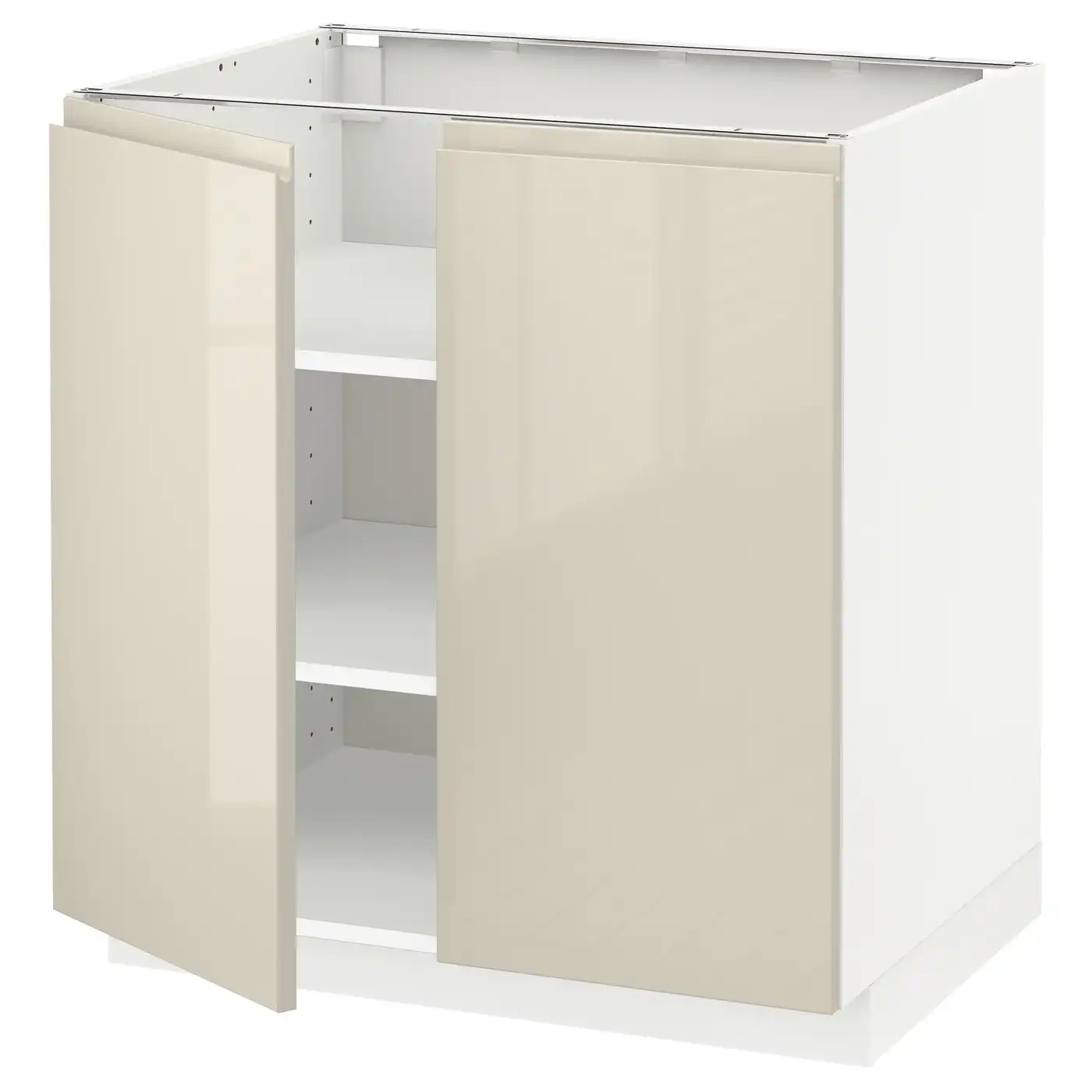 Compare all IKEA METOD Base cabinet with shelves and 2 doors 80x60 cm white/VOXTORP High-gloss light beige prices