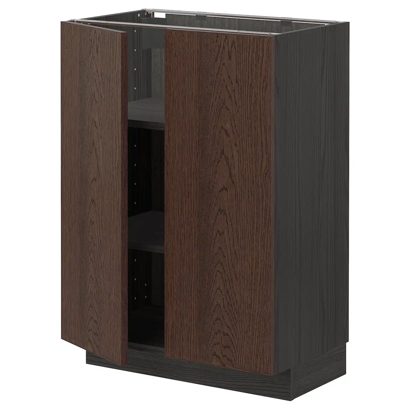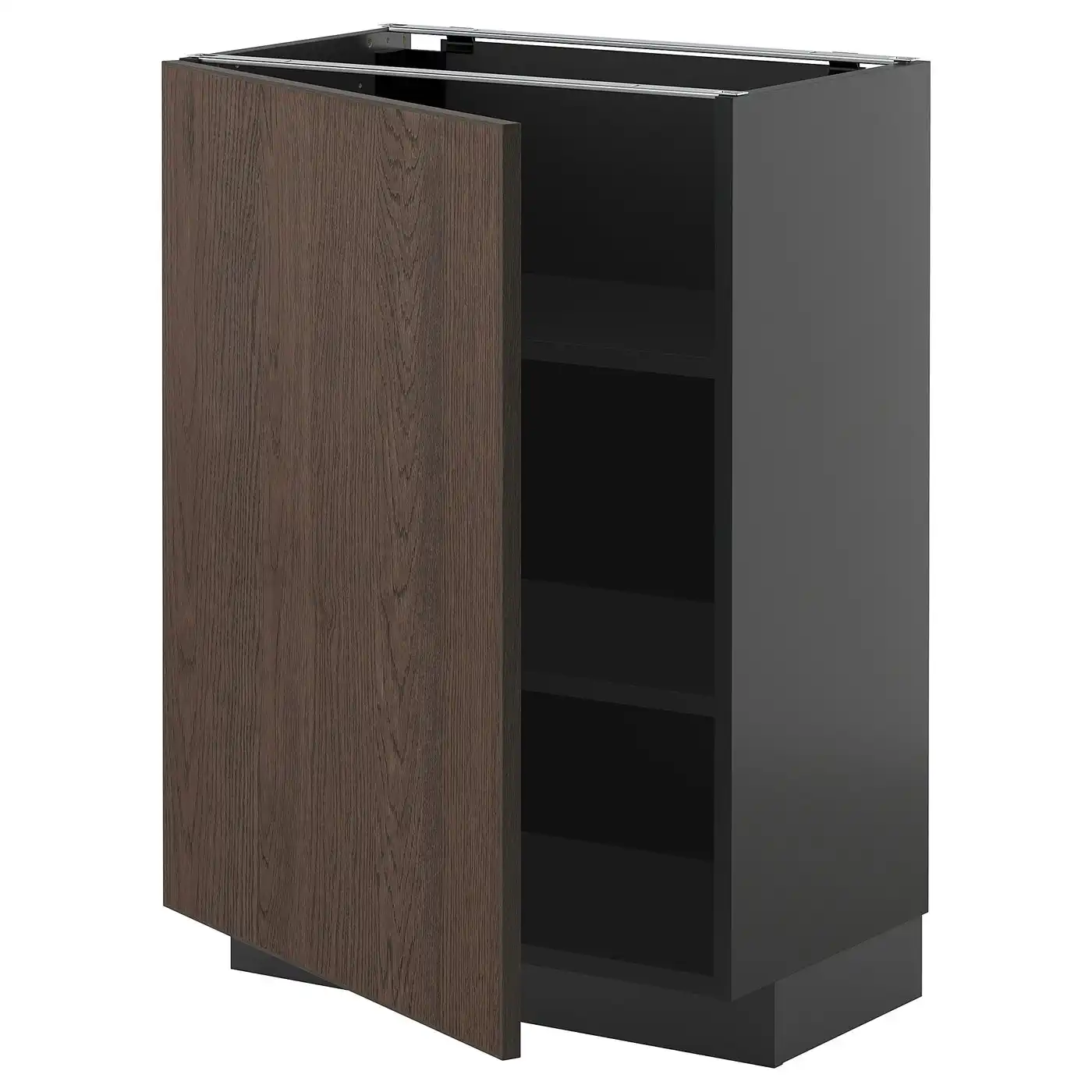 METOD Base cabinet with shelves - black-grey/Sinarp brown 60x37 cm