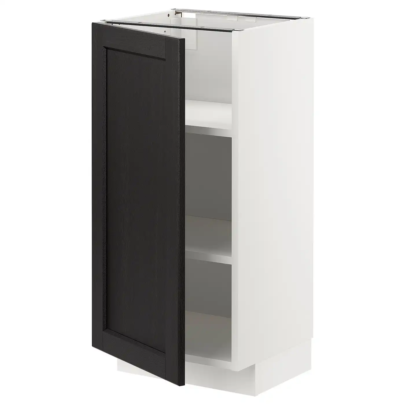 IKEA METOD Base cabinet with shelves 40x37 cm LERHYTTAN black stained/white