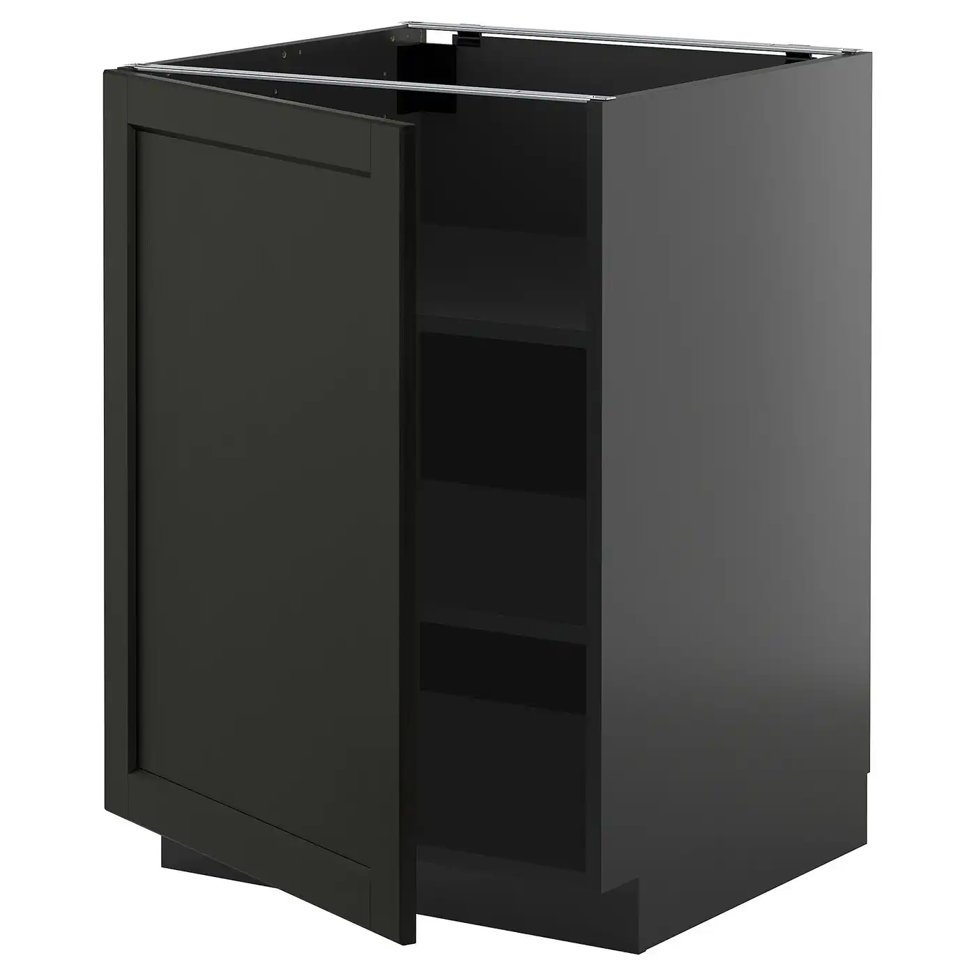 METOD Base cabinet with shelves - black-grey/Lerhyttan black stained 60x60 cm