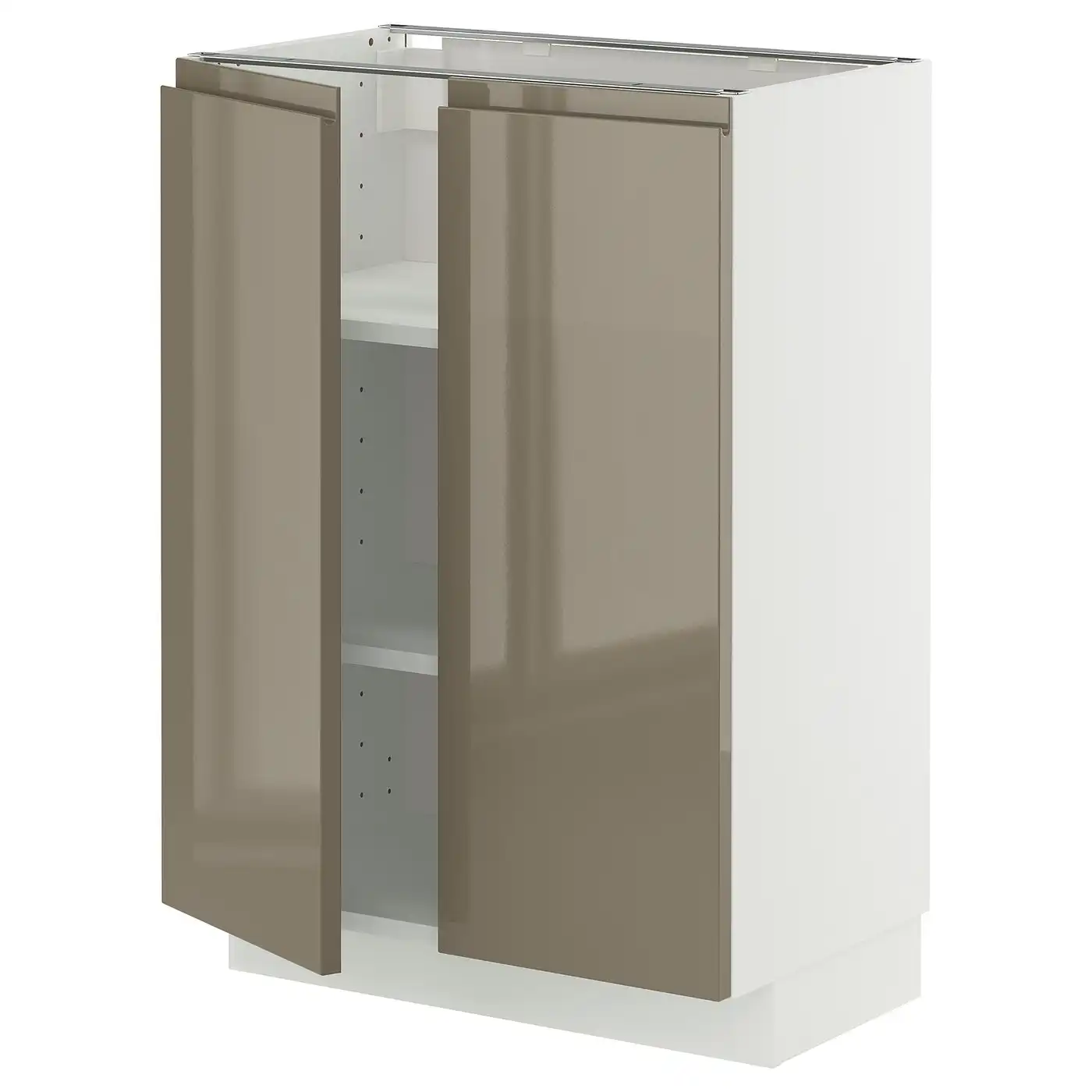METOD Base cabinet with shelves/2 doors - white/Voxtorp high-gloss dark grey-brown 60x37 cm
