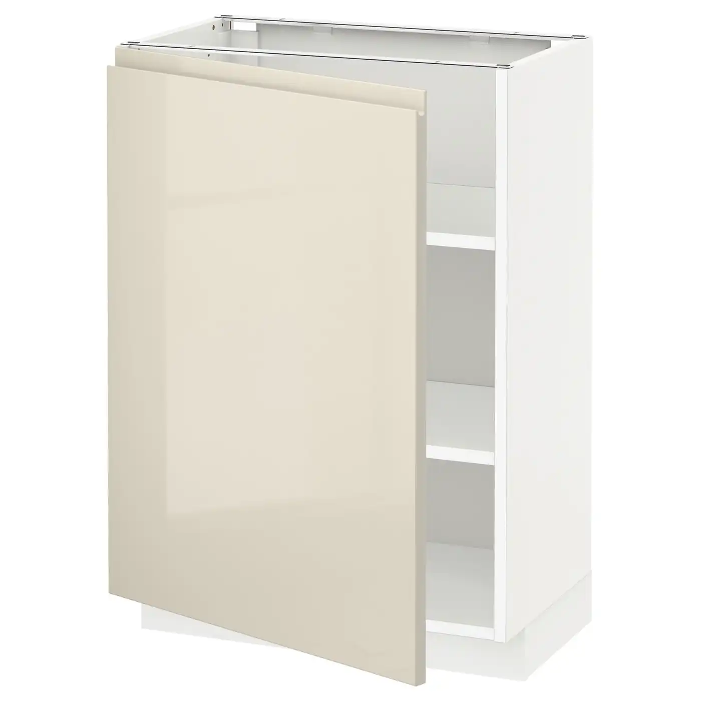 IKEA METOD Base cabinet with shelves 60x37 cm white/VOXTORP High-gloss light beige