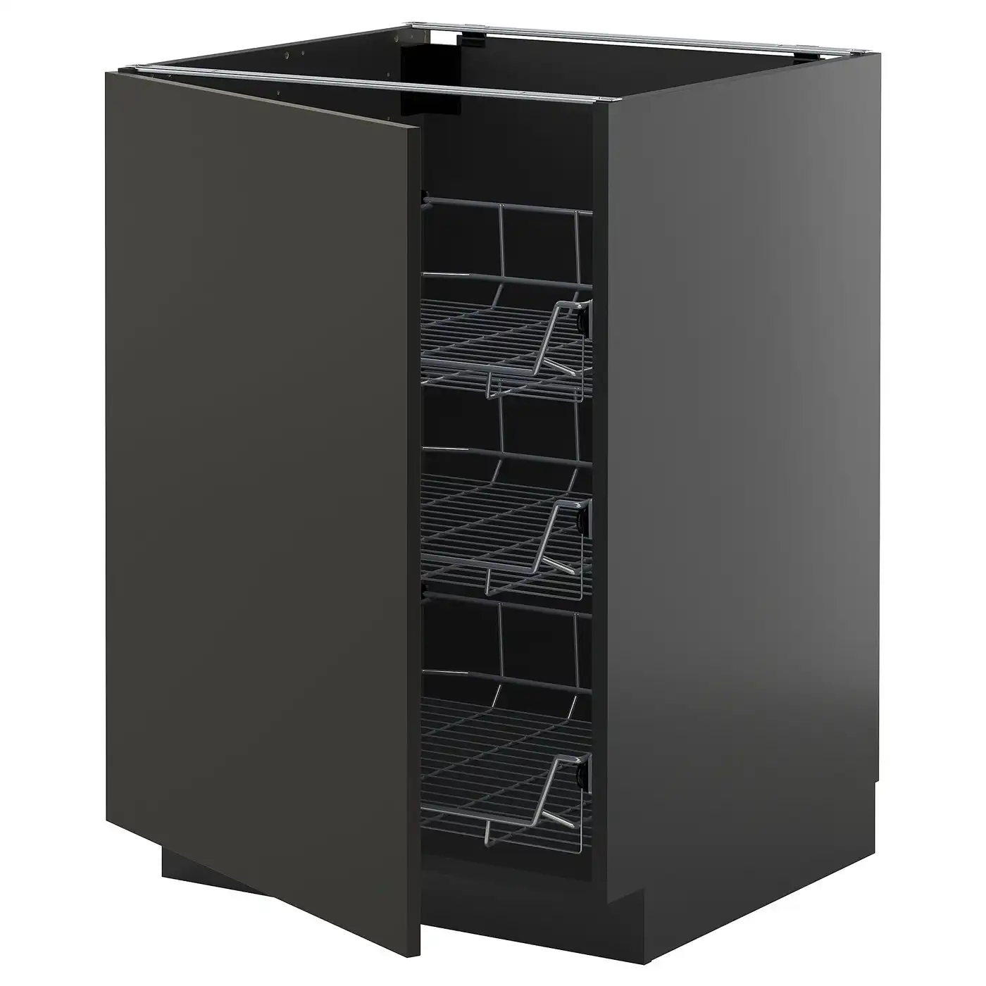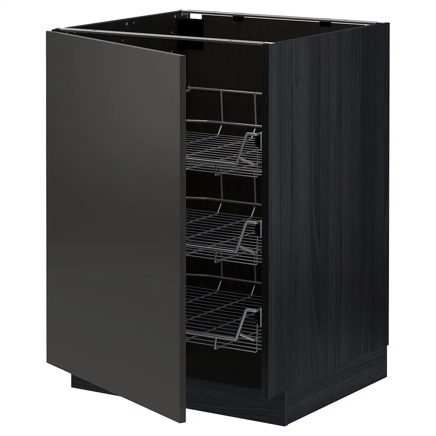 METOD Base cabinet with wire baskets - black-grey/Nickebo matt anthracite 60x60 cm
