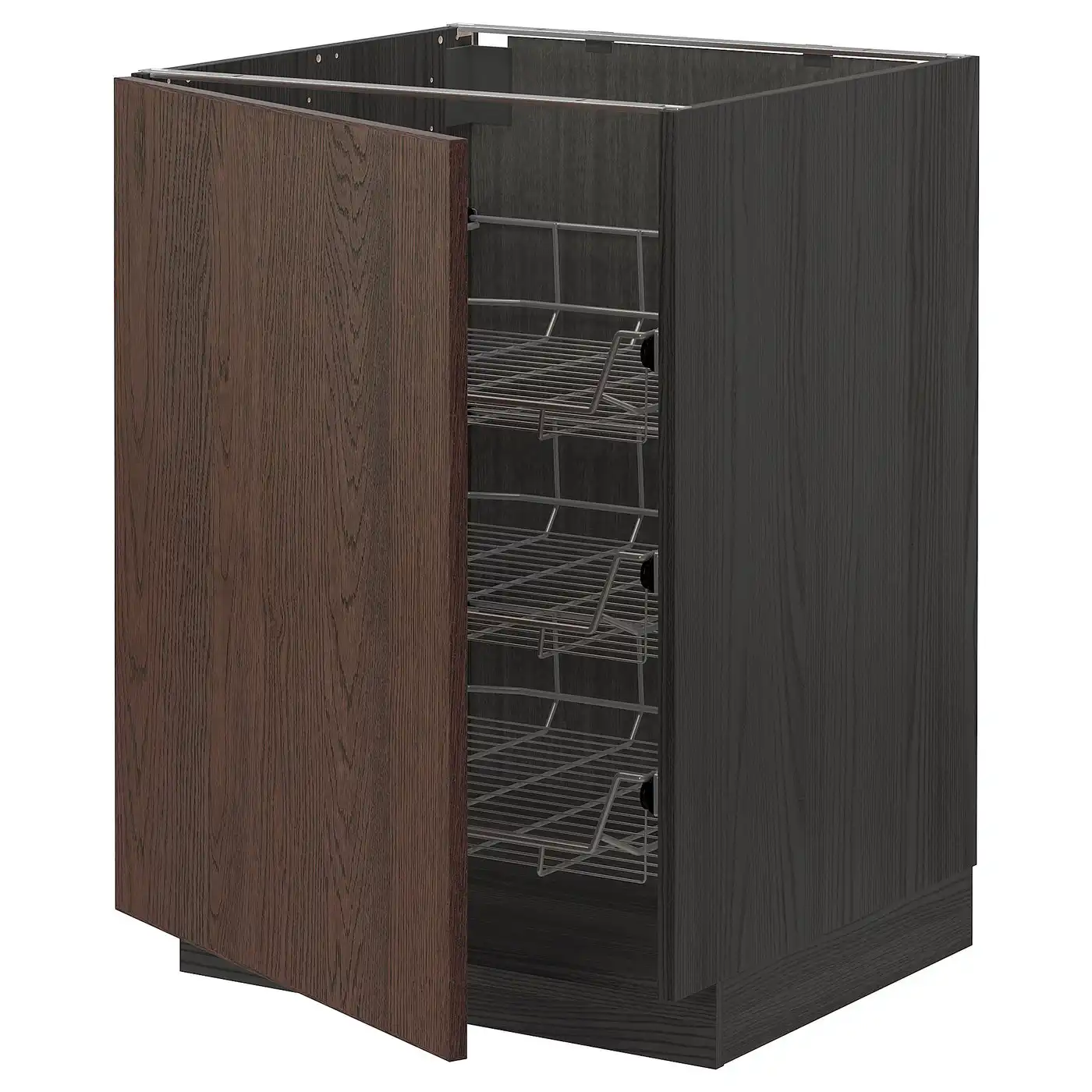 METOD Base cabinet with wire baskets - black/Sinarp brown 60x60 cm