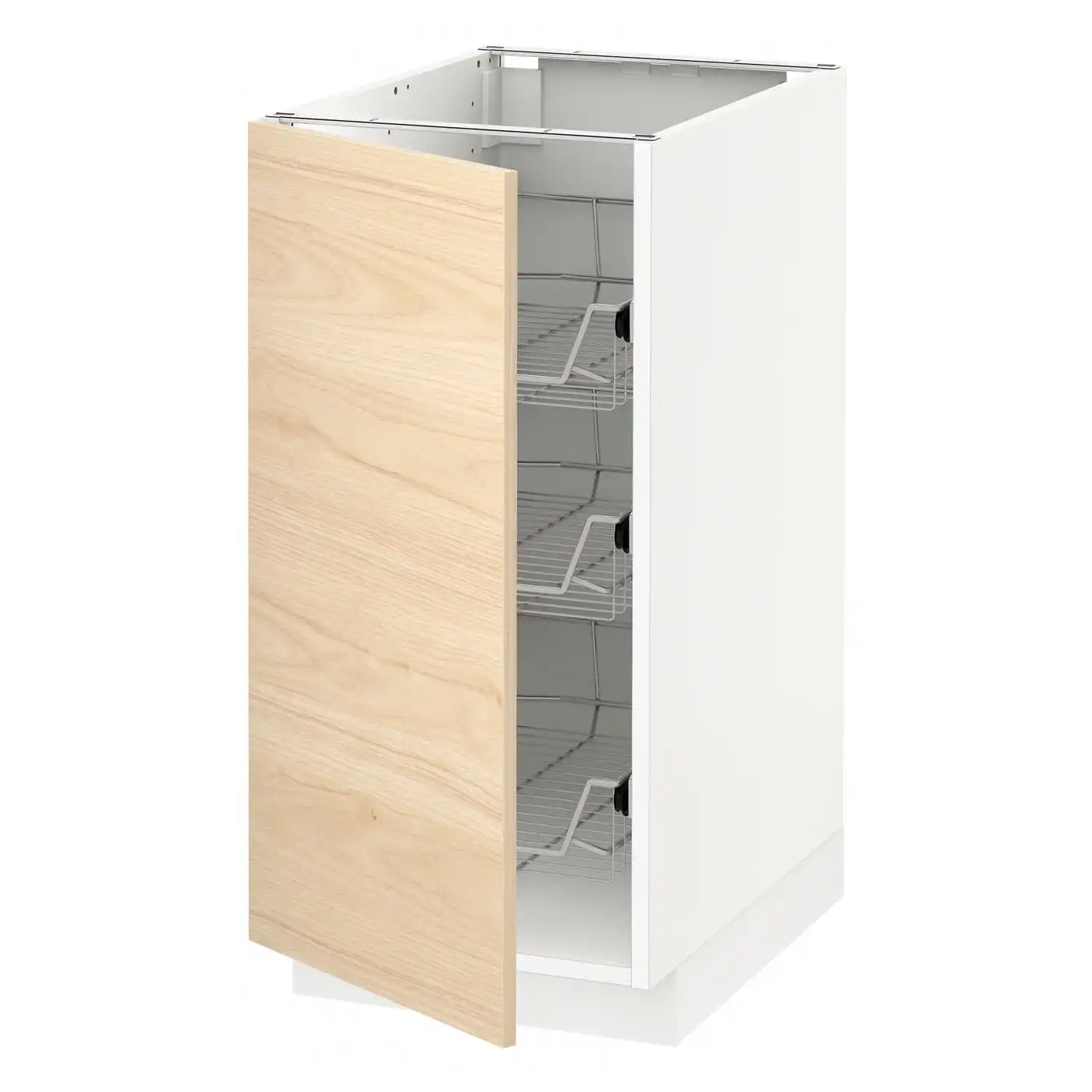 METOD Base cabinet with wire baskets - white/Askersund light ash effect 40x60 cm