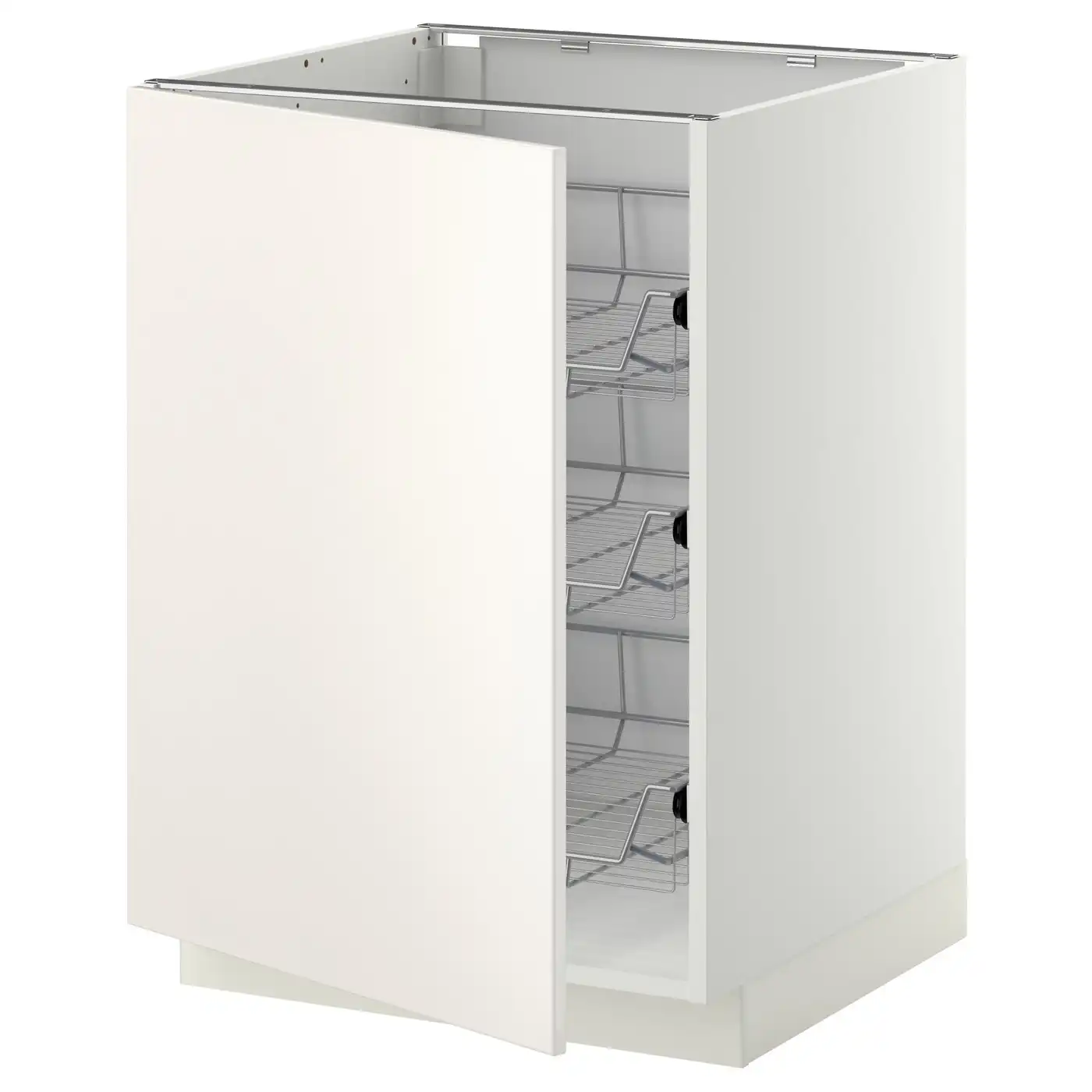 IKEA METOD Base cabinet with wire baskets 60x60 cm white/VEDDINGE white