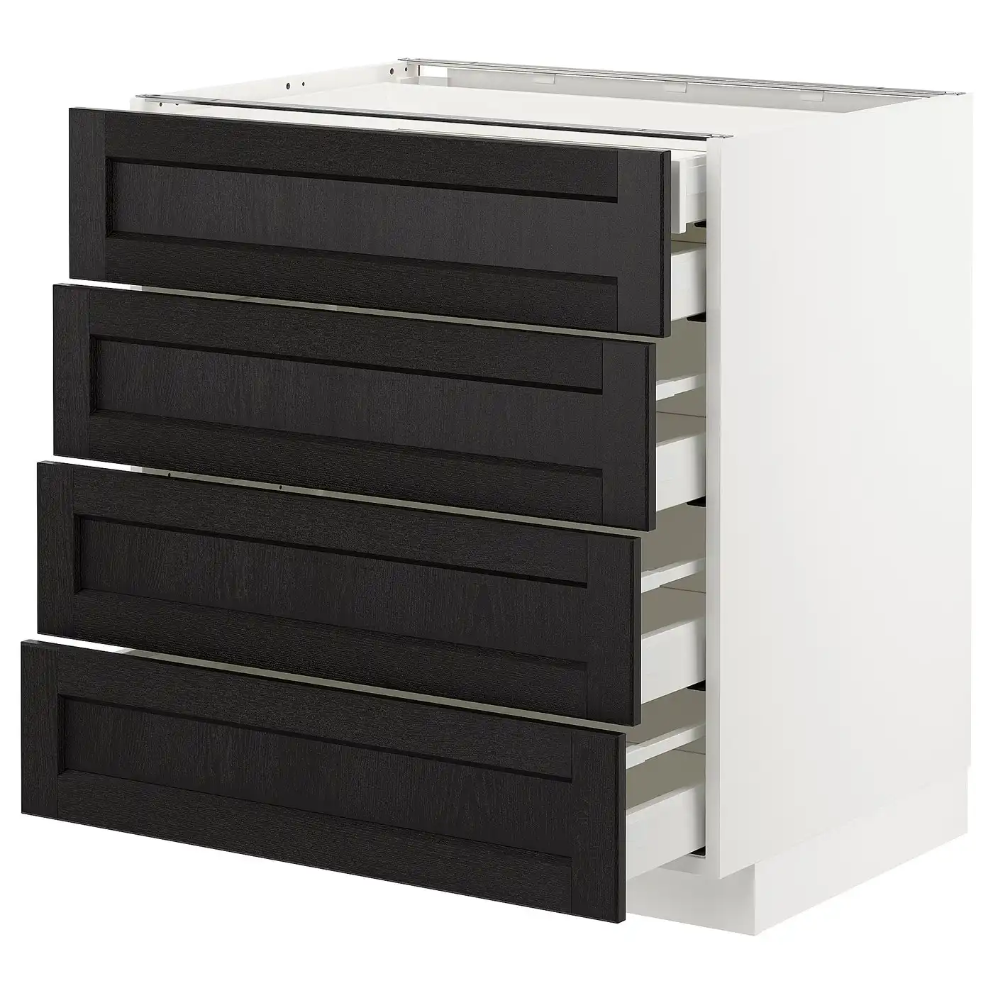 Compare all IKEA METOD Base cabinet with 4 fronts, 2 low and 3 medium drawers 80x60 cm LERHYTTAN black stained/white prices