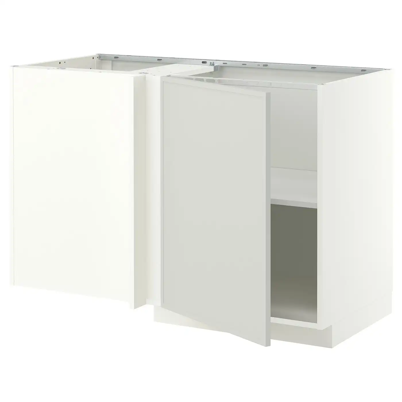 IKEA METOD Corner base cabinet with shelf 128x68 cm white/ASPUDDEN light grey