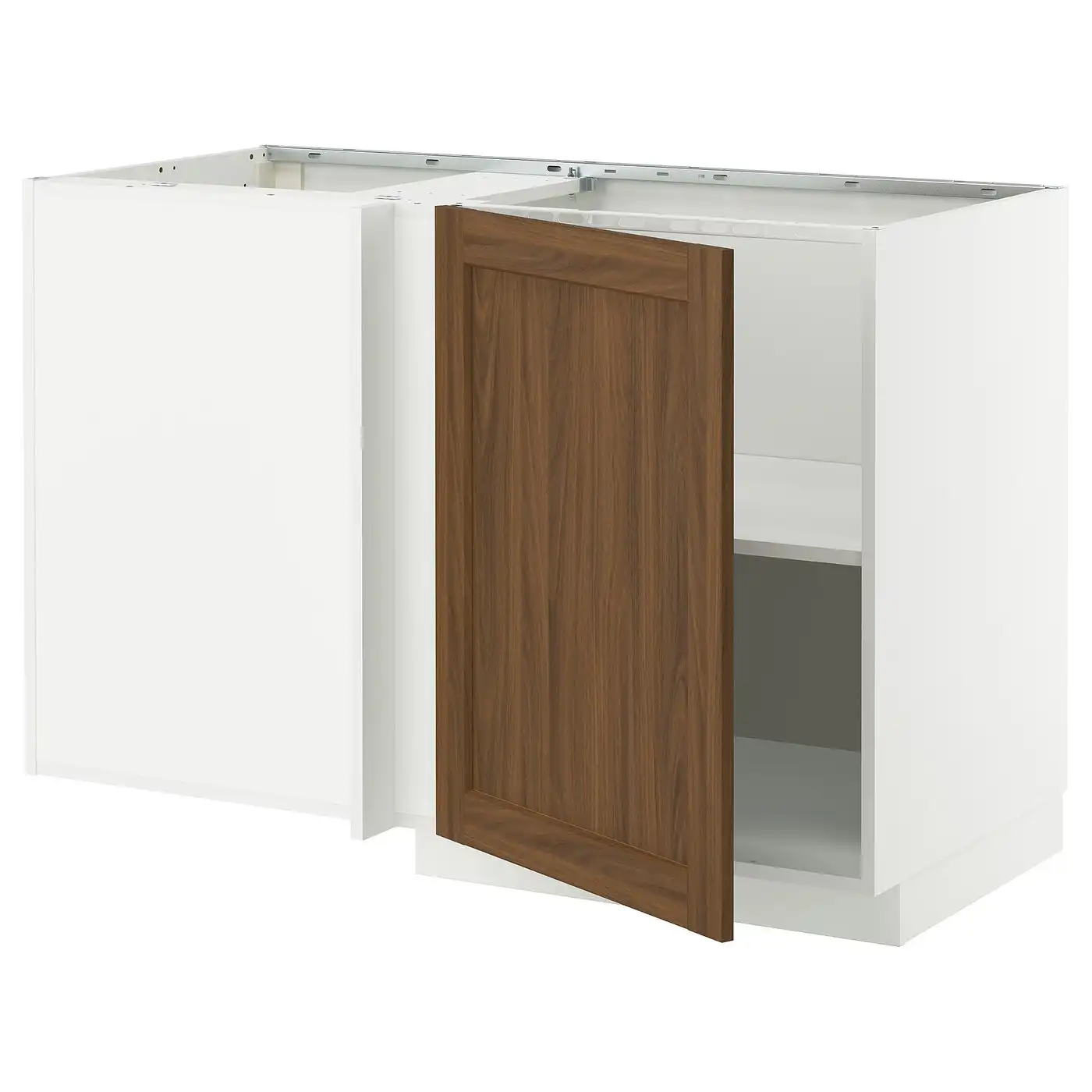 METOD Corner base cabinet with shelf - white Enköping/brown walnut effect 128x68 cm