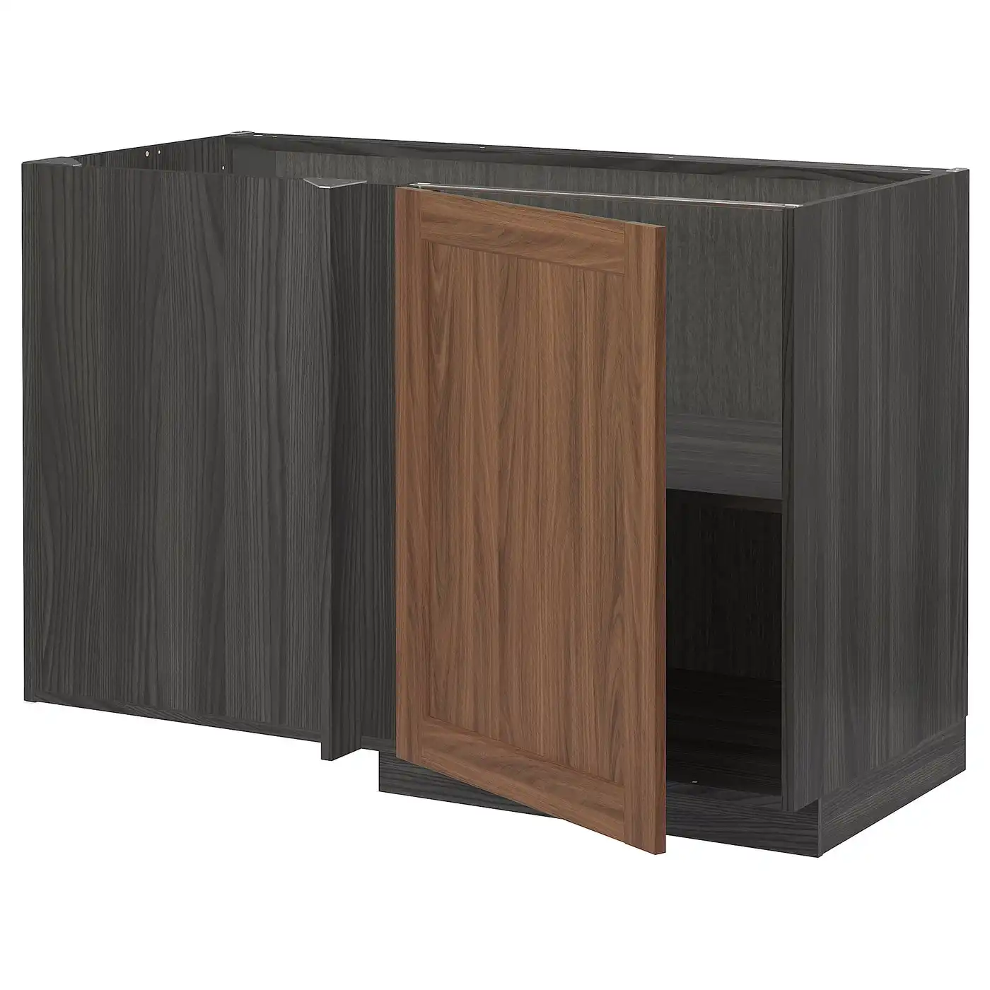 METOD Corner base cabinet with shelf - black Enköping/brown walnut effect 128x68 cm
