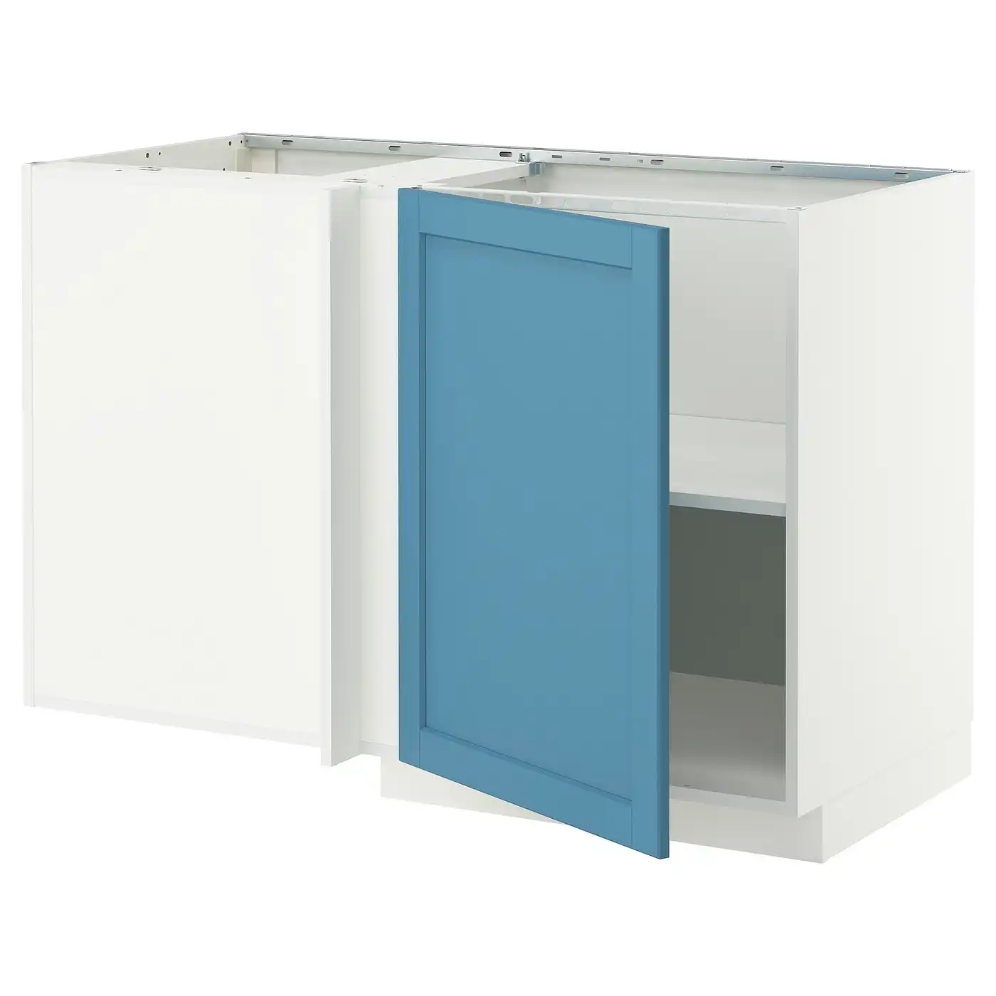 IKEA METOD Corner base cabinet with shelf 128x68 cm white/LERHYTTAN blue