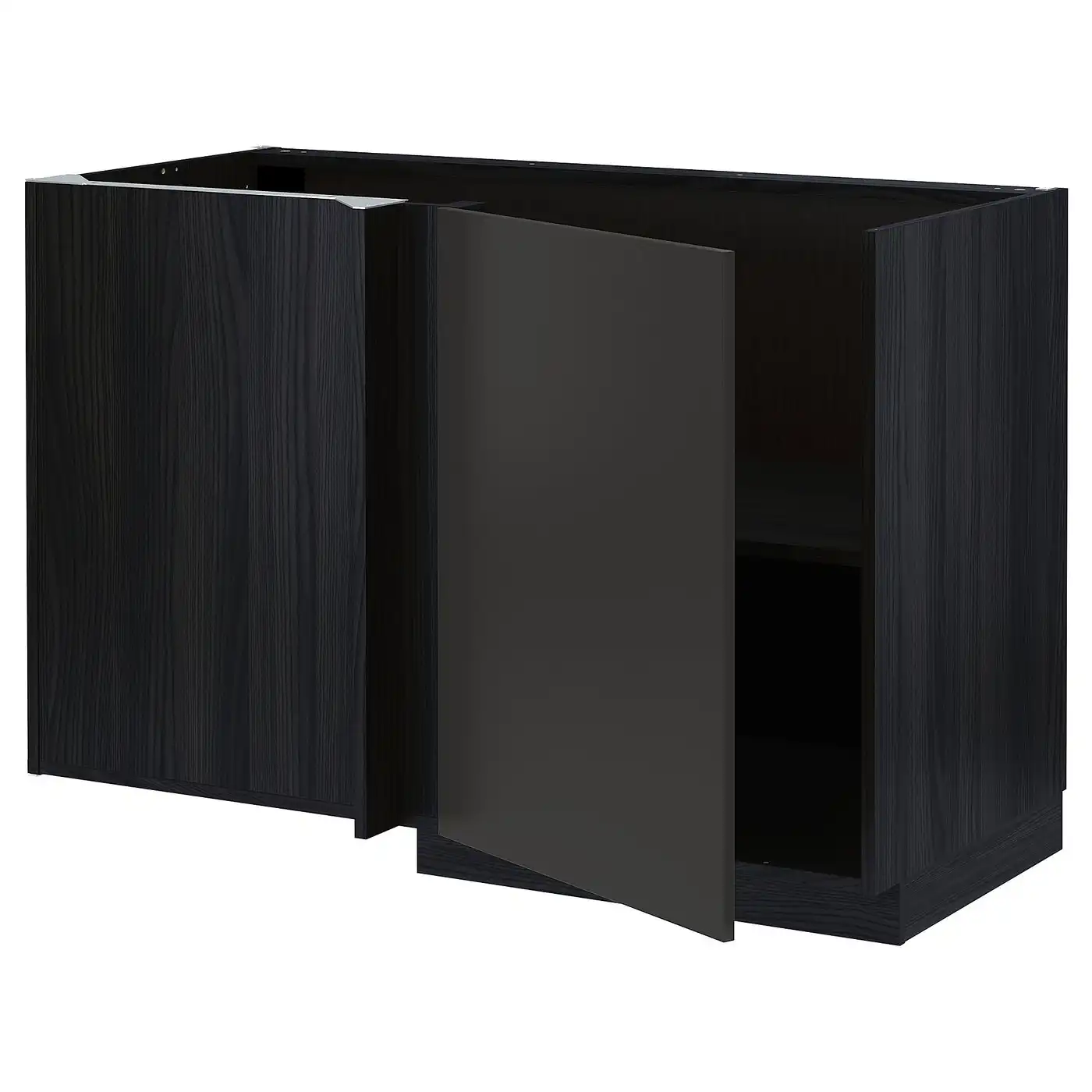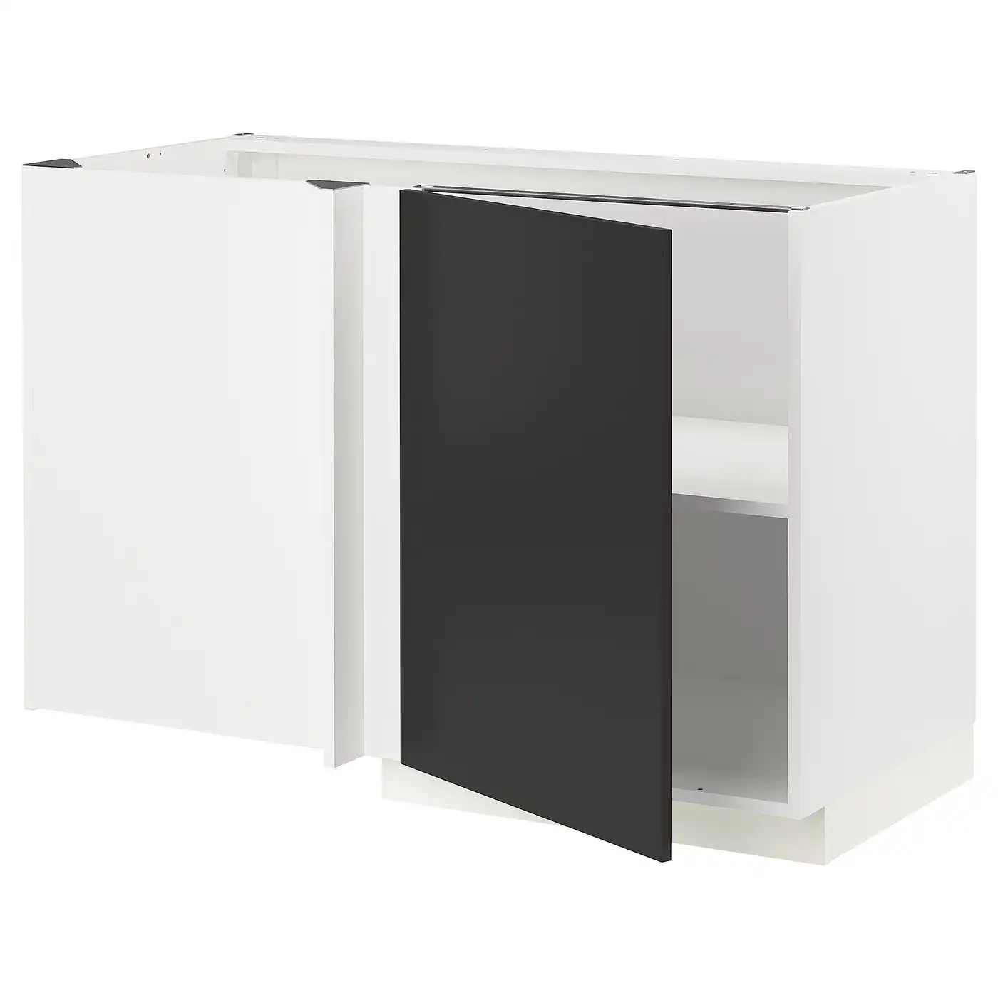 METOD Corner base cabinet with shelf - black/Nickebo matt anthracite 128x68 cm