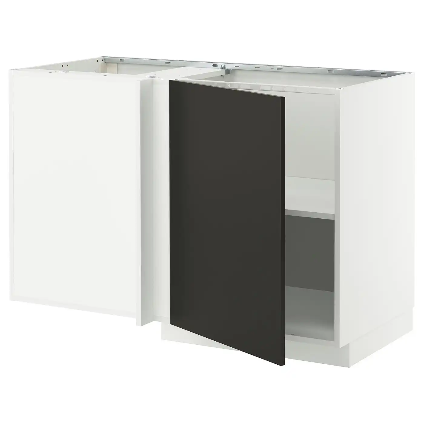 METOD Corner base cabinet with shelf - white/Nickebo matt anthracite 128x68 cm