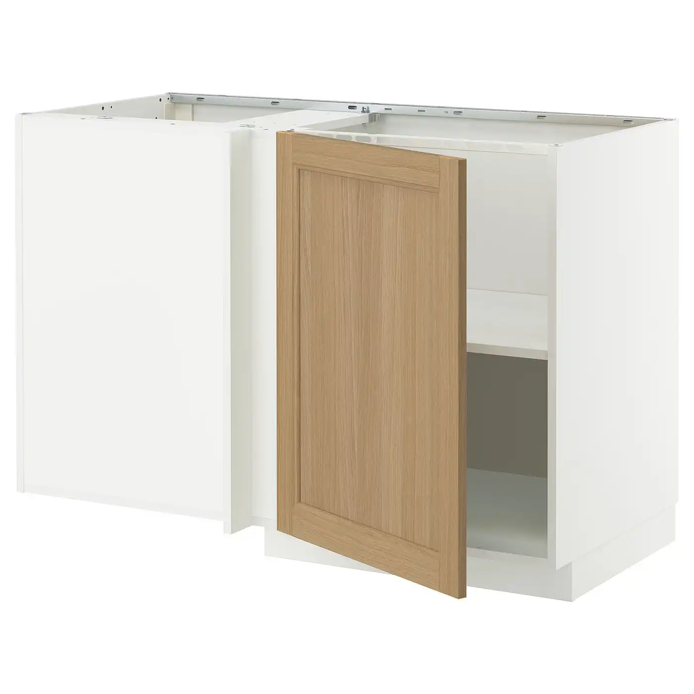 METOD Corner base cabinet with shelf - white/Vedhamn oak 128x68 cm