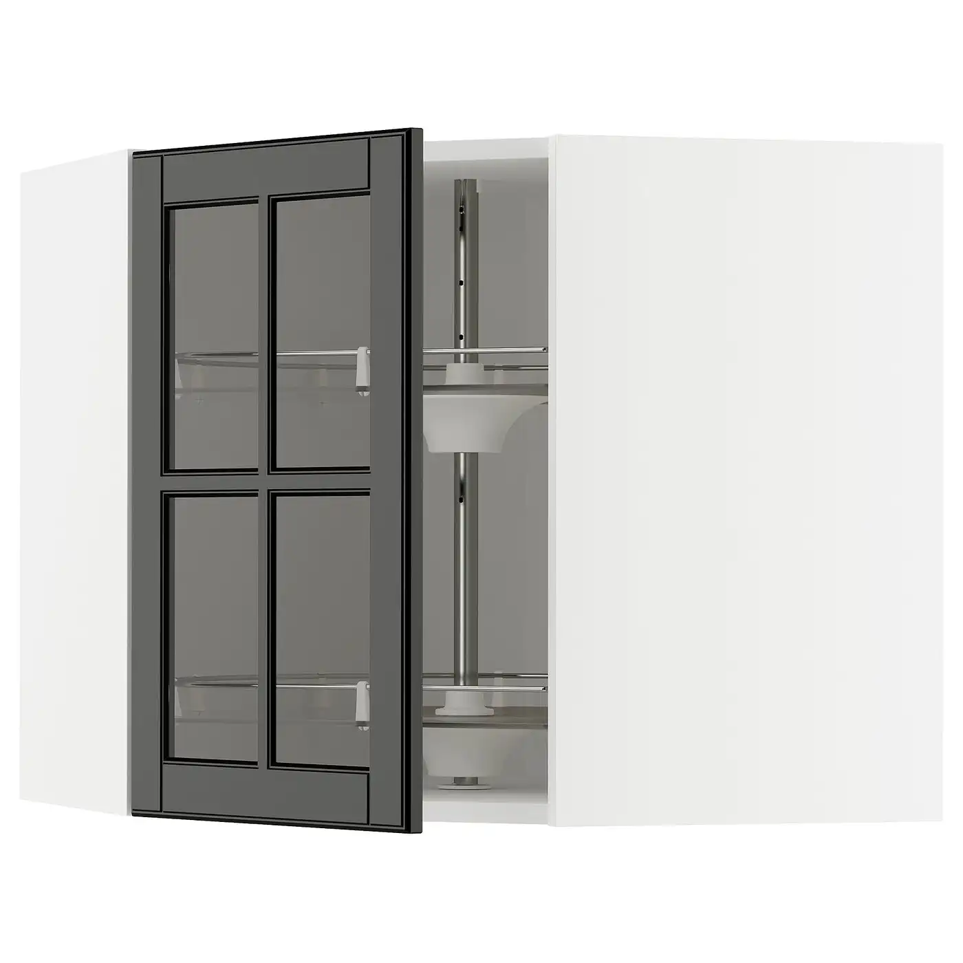 IKEA METOD Corner wall cabinet with carousel and glass door 68x60 cm BODBYN black/white
