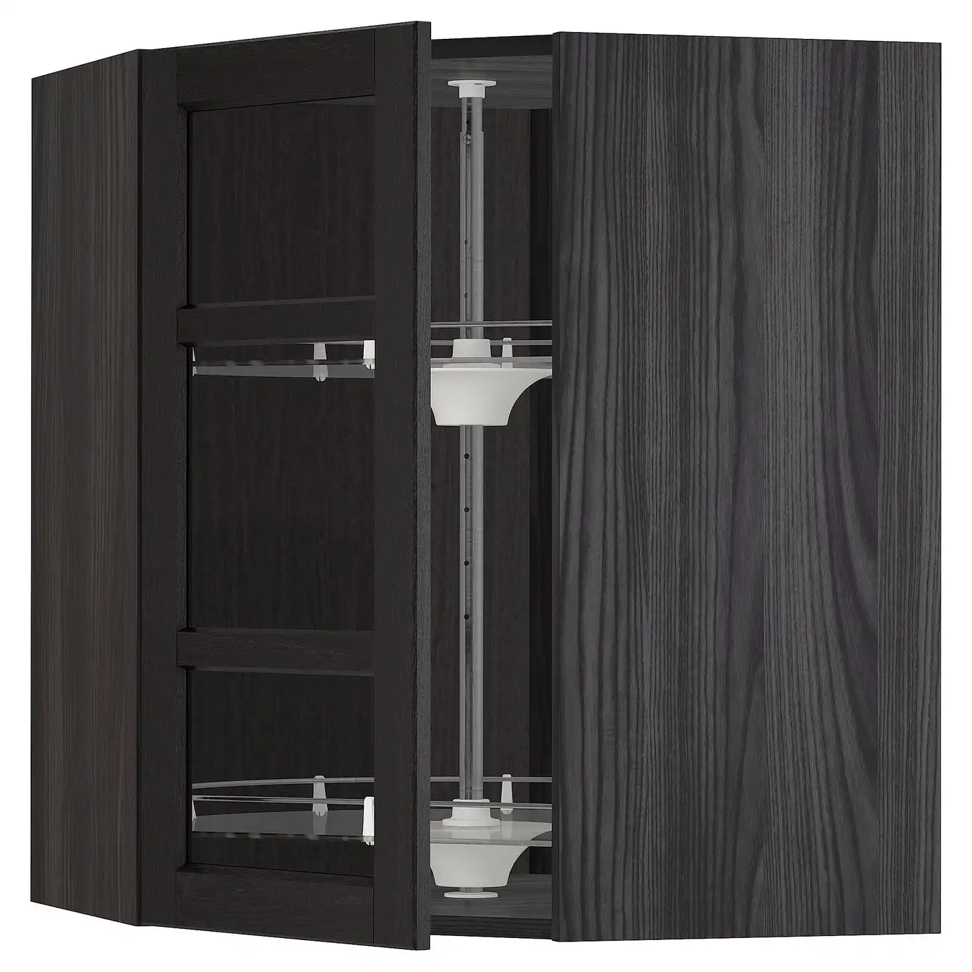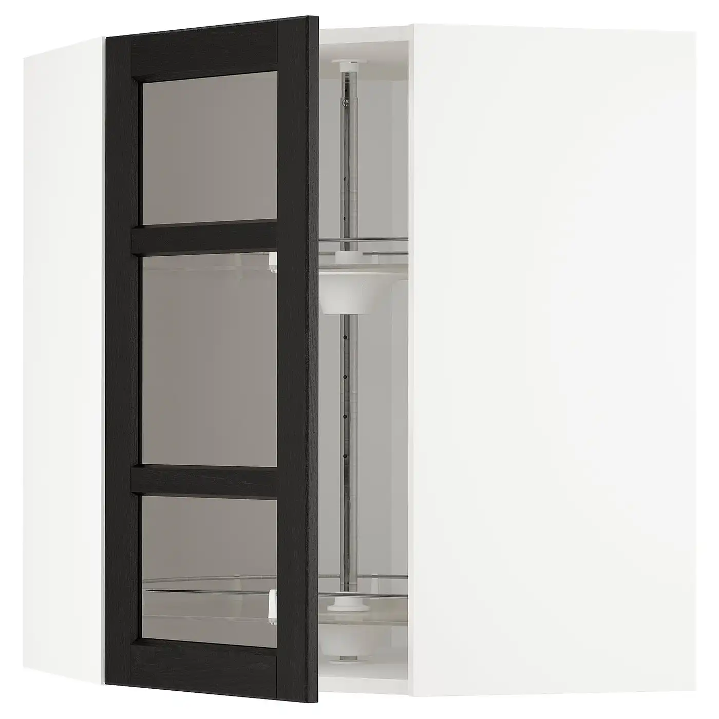 METOD Corner wall cab w carousel/glass dr - black/Lerhyttan black stained 68x80 cm