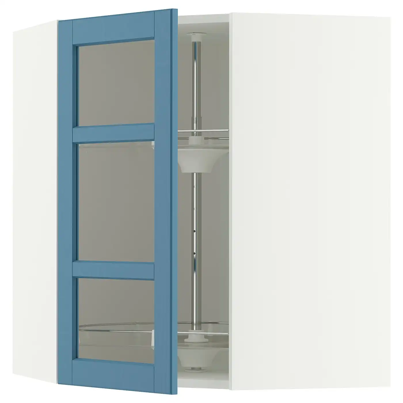 METOD Corner wall cab w carousel/glass dr - white/Lerhyttan blue 68x80 cm