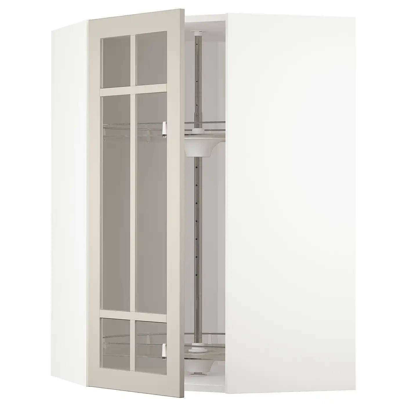 IKEA METOD Corner wall cabinet with carousel and glass door 68x100 cm STENSUND beige/white