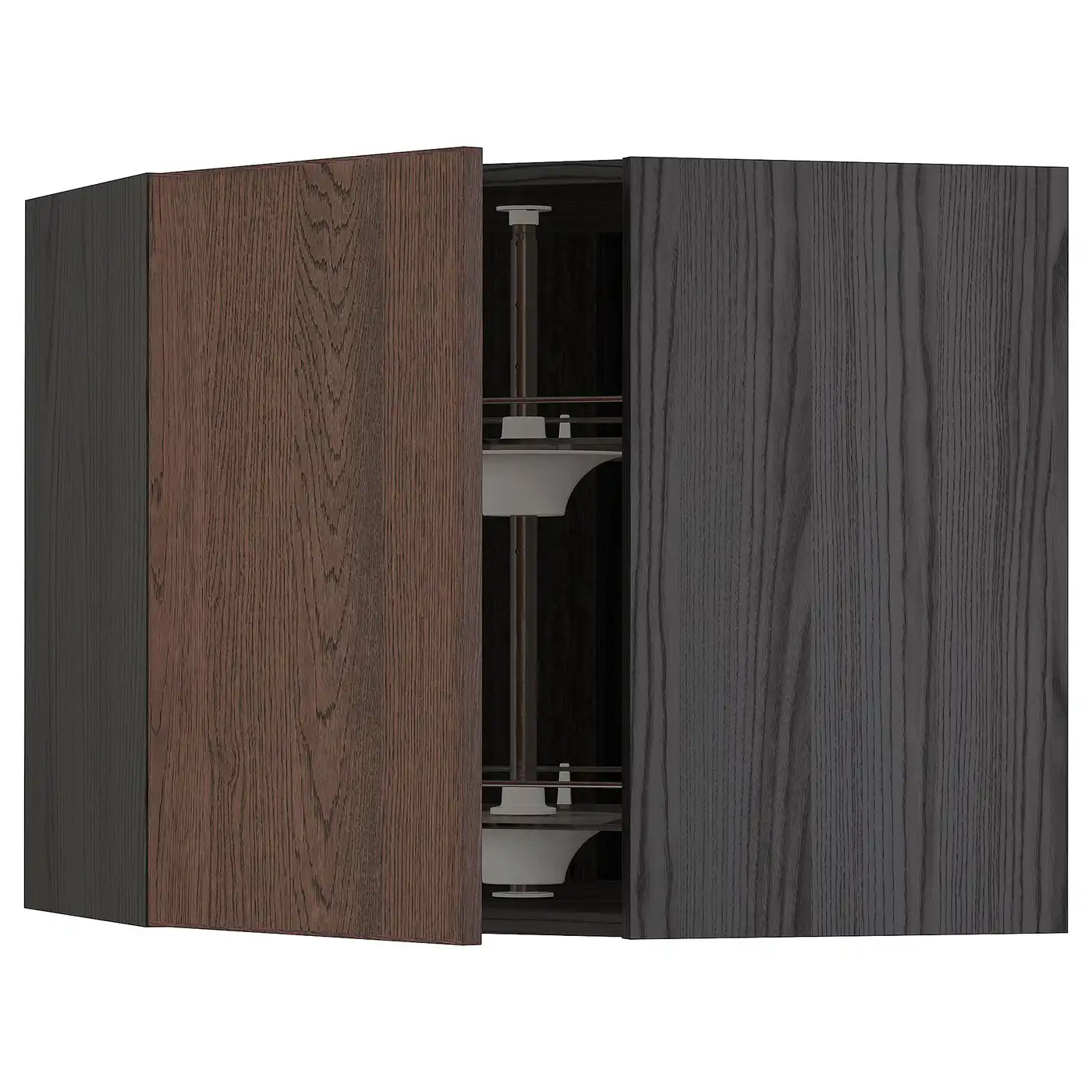 METOD Corner wall cabinet with carousel - black-grey/Sinarp brown 68x60 cm