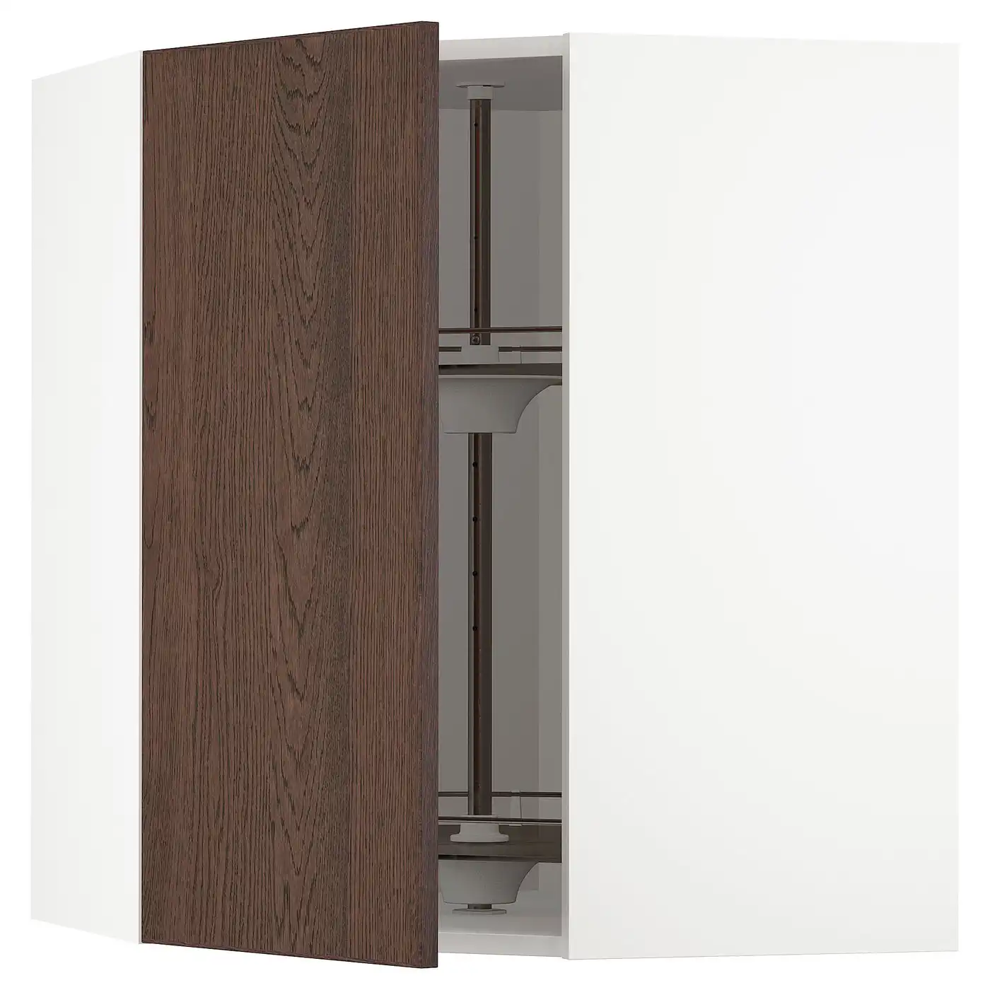 METOD Corner wall cabinet with carousel - white/Sinarp brown 68x80 cm